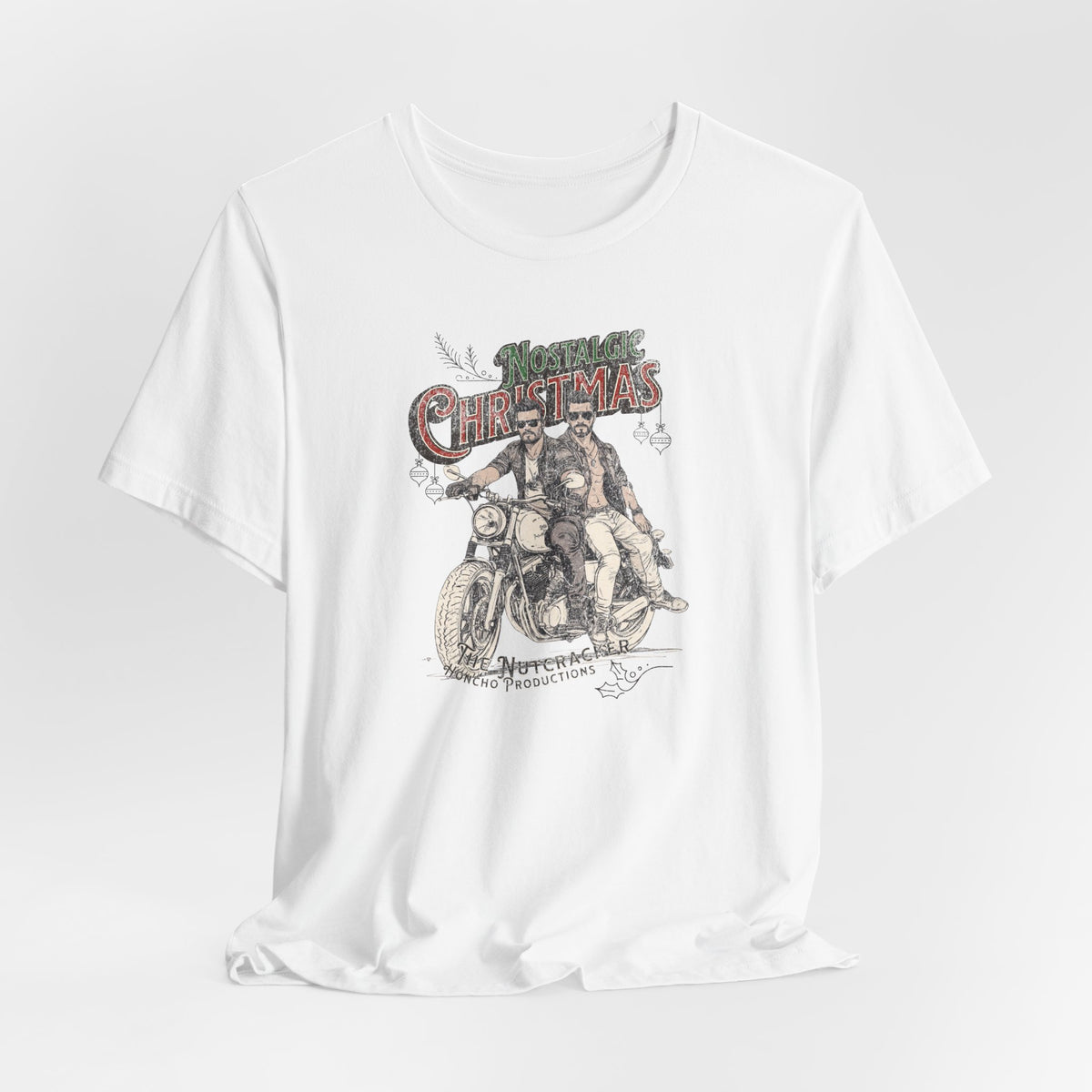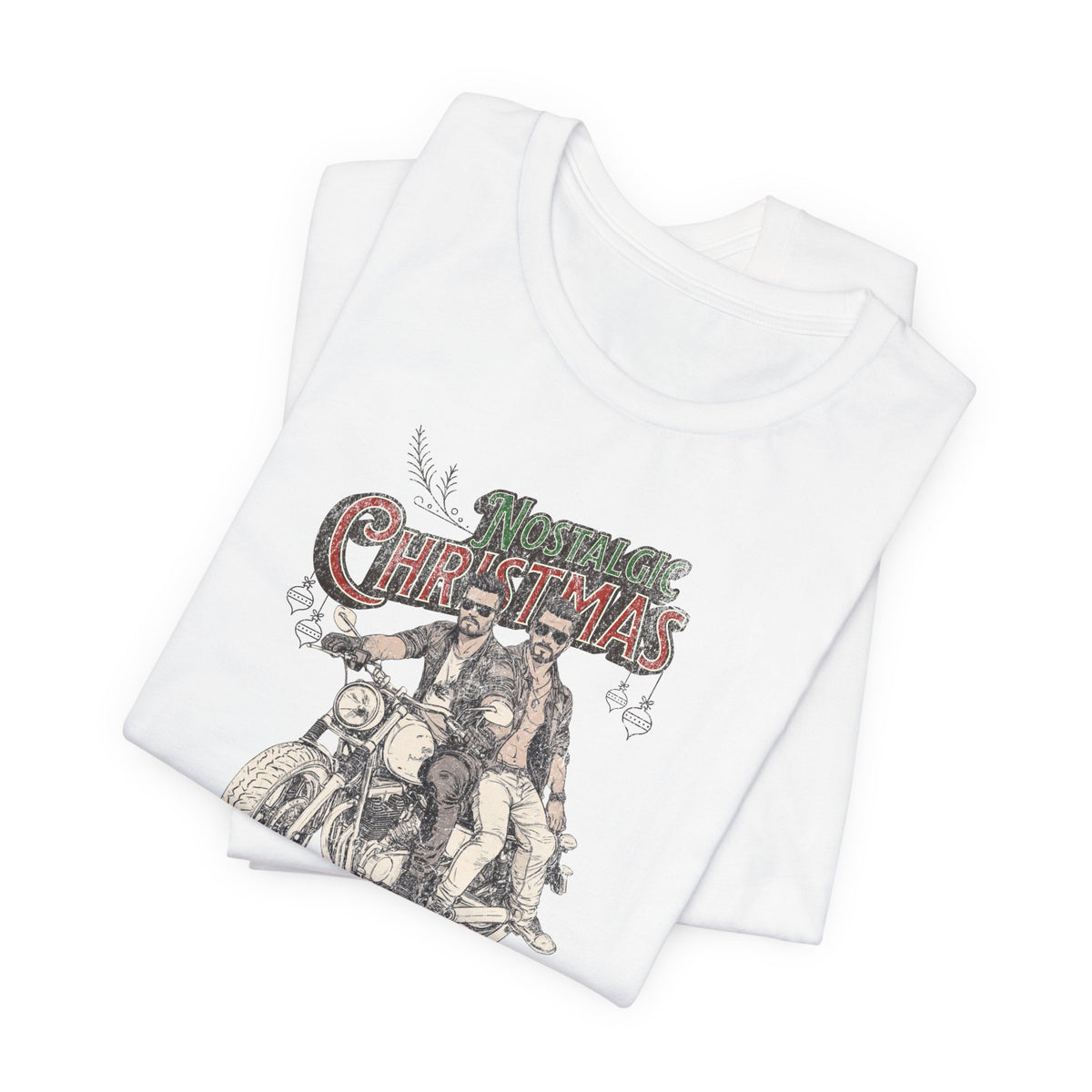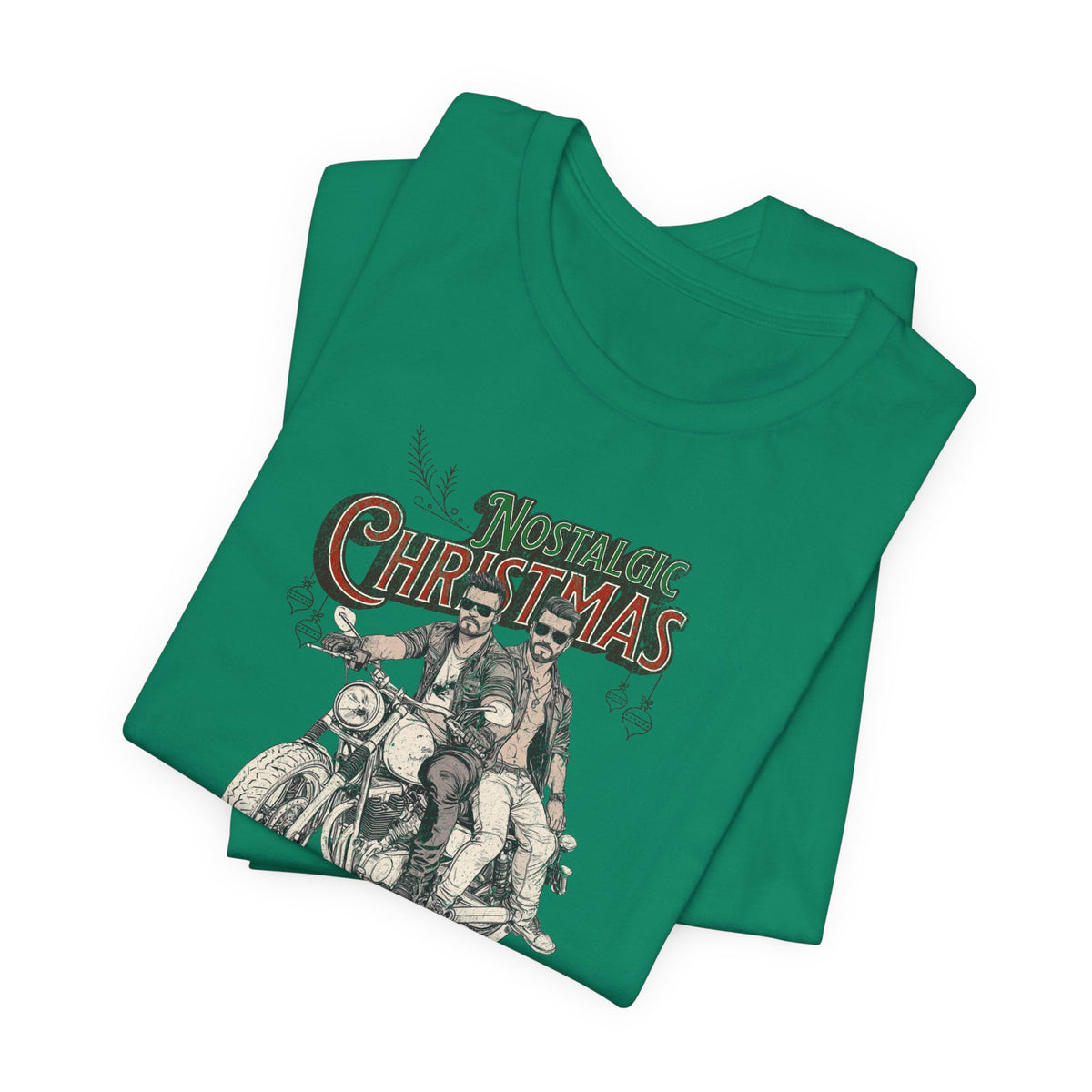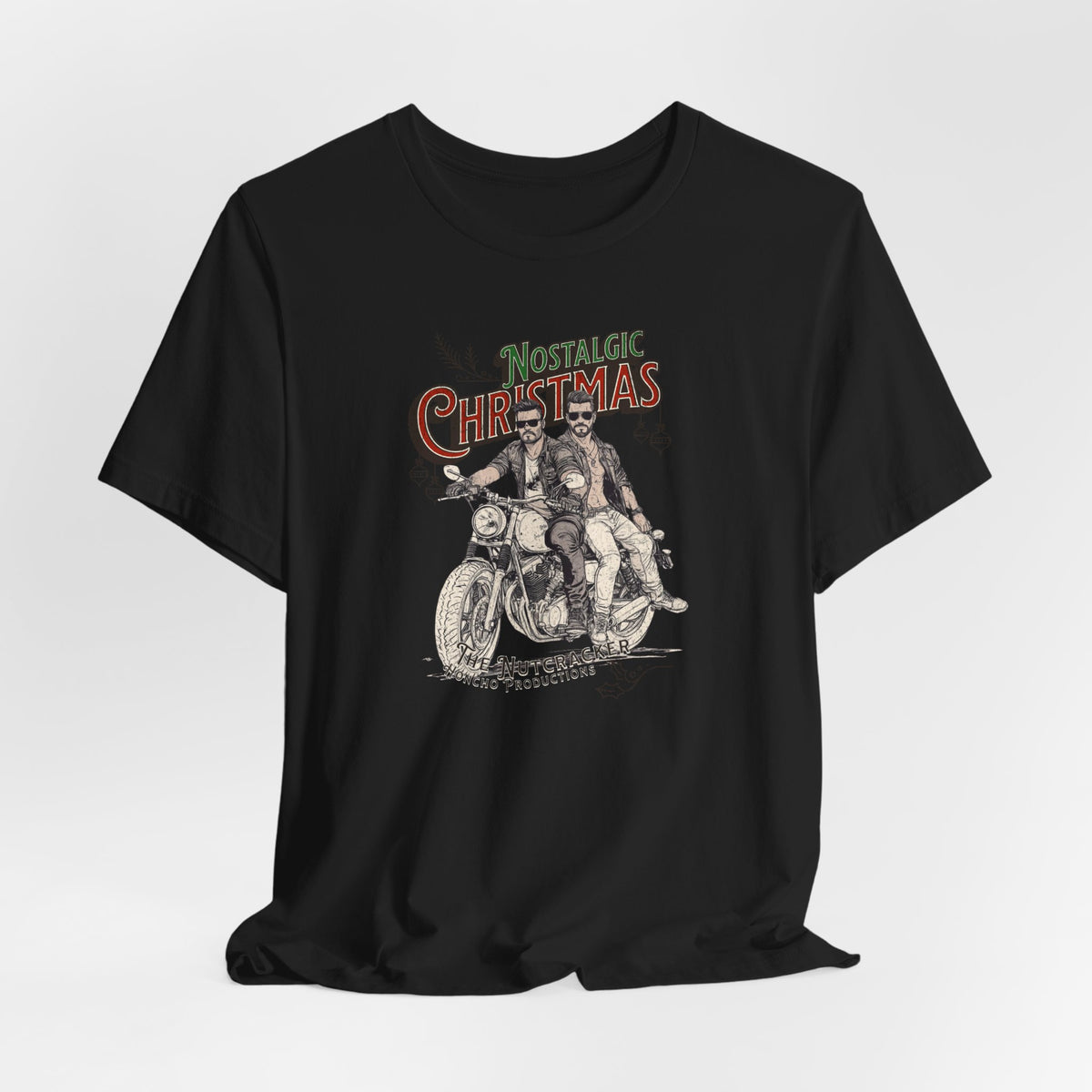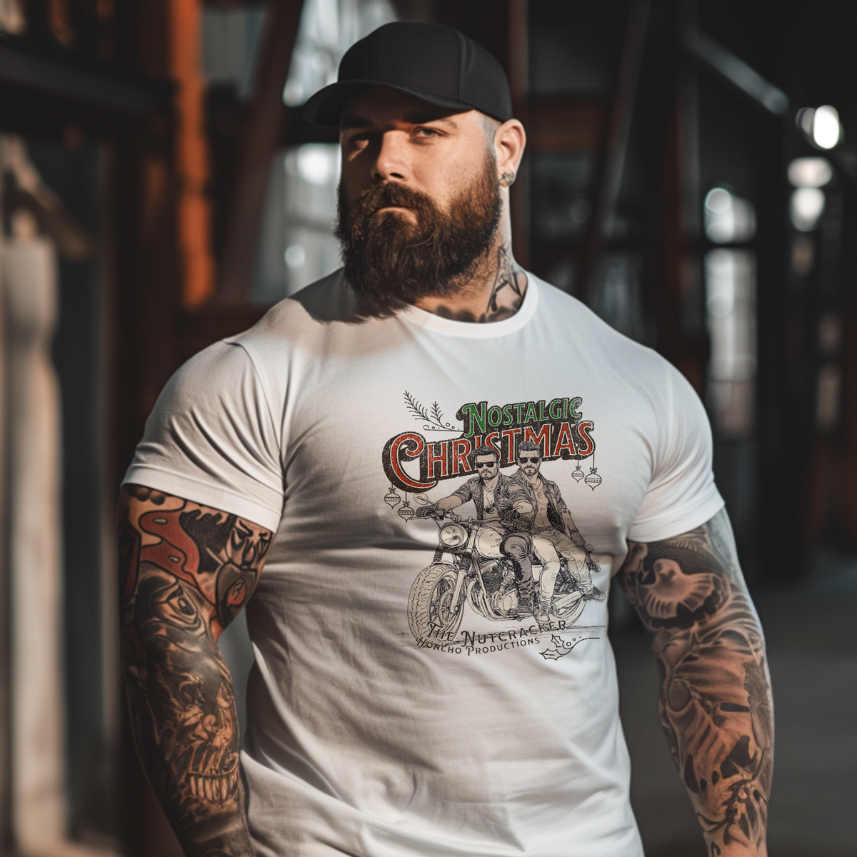 Celebrate the season with a bold nod to the heyday of vintage leather culture in our “Nostalgic Christmas” tee. Inspired by the classic pages of Honcho magazine, this design captures two confident men riding side by side, embodying the free-spirited essence of the gay subculture of the 70s. With a playful mix of holiday cheer and rebellious nostalgia, this shirt merges the warmth of Christmas with the allure of yesteryear’s leather scene. Perfect for those who appreciate a little throwback flair with their festive gear, this tee isn’t just clothing – it’s a statement. Reminiscent of a time when style, pride, and unapologetic authenticity ruled, this design is ideal for holiday gatherings or simply showing off a piece of LGBTQ+ history. Let your holiday look reflect the charm and charisma of a truly unique era with this iconic piece.