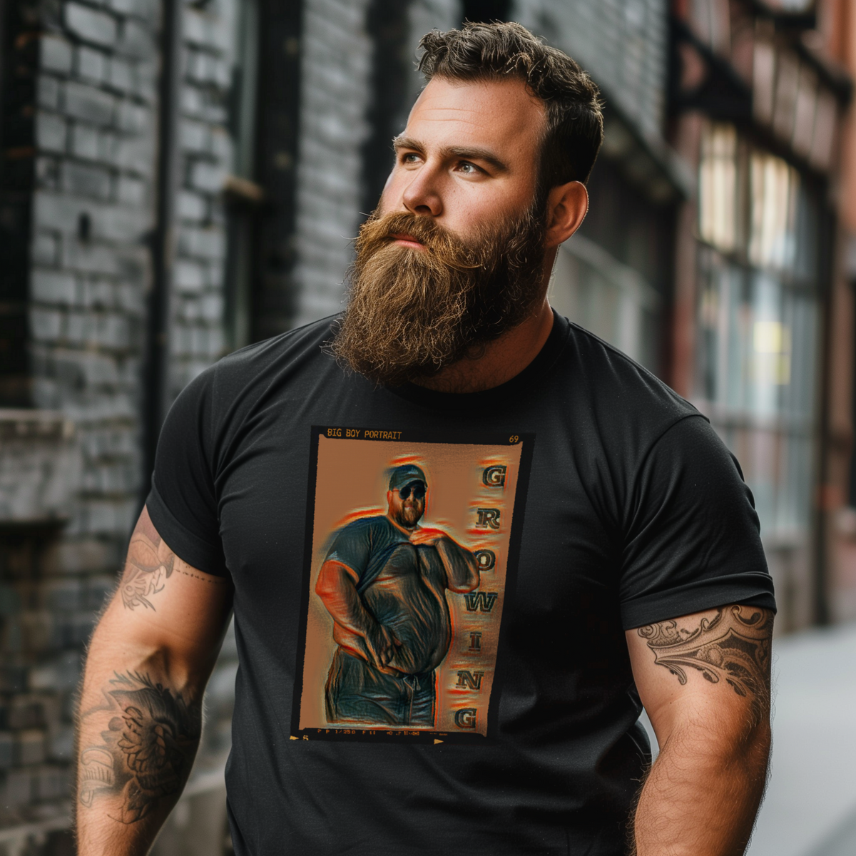 Celebrate the bold contours of fulfillment with our latest design – a salute to the feedism community. This 'Big Boy Growing' tee captures the essence of growth and indulgence, featuring a sexy gainer reveling in his form. The rich, vibrant hues and the commanding word 'GROWING' emblazoned down the side serve as a powerful emblem of the journey and joy found in the feeder-gainer dynamic. It's a design that speaks to the heart of body positivity, self-acceptance, and the pleasure of expansion.