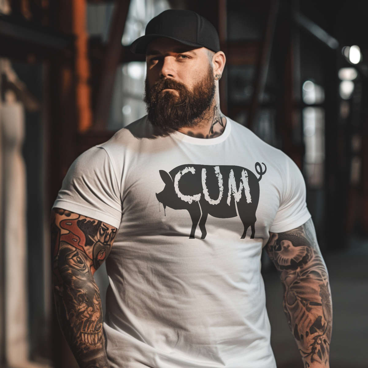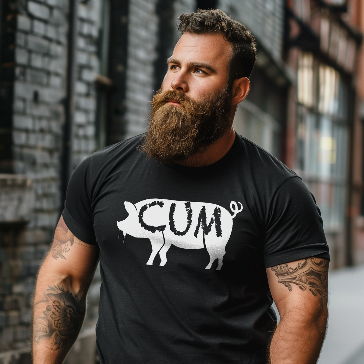 Take a walk on the wild side with our audacious 'Cum Pig' Bella+Canvas 3001 fitted tee. A bold shout-out to those who love to express their adventurous and risqué sides, this shirt is all about embracing the dirty, the raunchy, and the delightfully naughty. Our 'Cum Pig' tee doesn't just push boundaries, it bounds over them balls swinging and hanging low--that's just the way we like it. It's a garment that's not afraid to play and provoke. Made for those with a proud, unapologetic style. Order your 'Cum Pig' tee today, and celebrate your affinity for the seed of life!