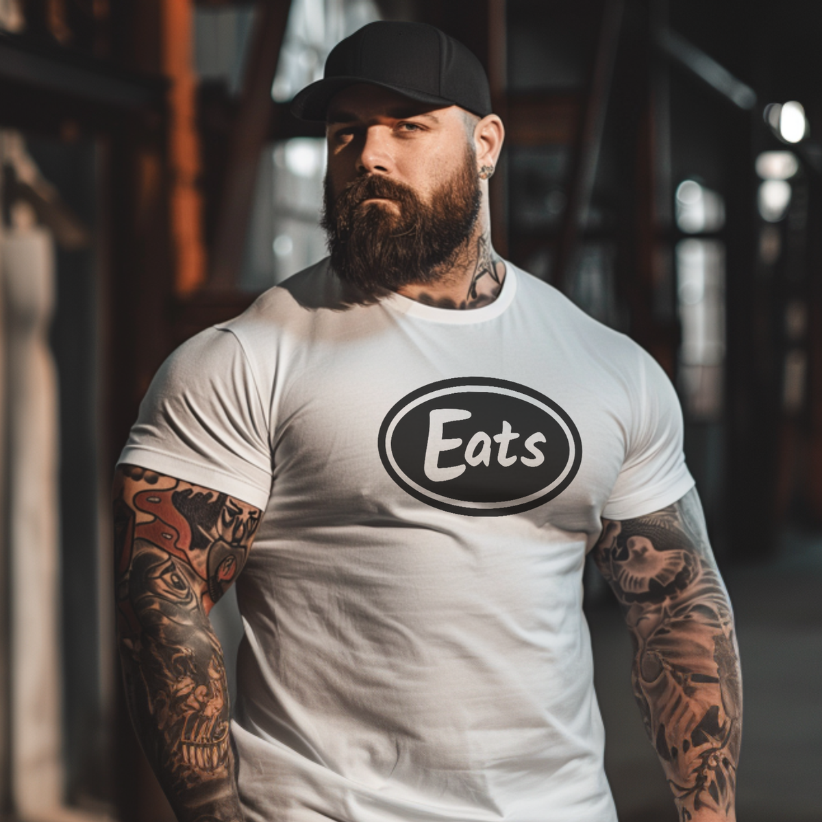 Own Your Kink! Eat like the pig you are and advertise with our’Eats’ tee, a subtle expression of the dirty pig inside. Get yours today and meet more of the likeminded tomorrow.