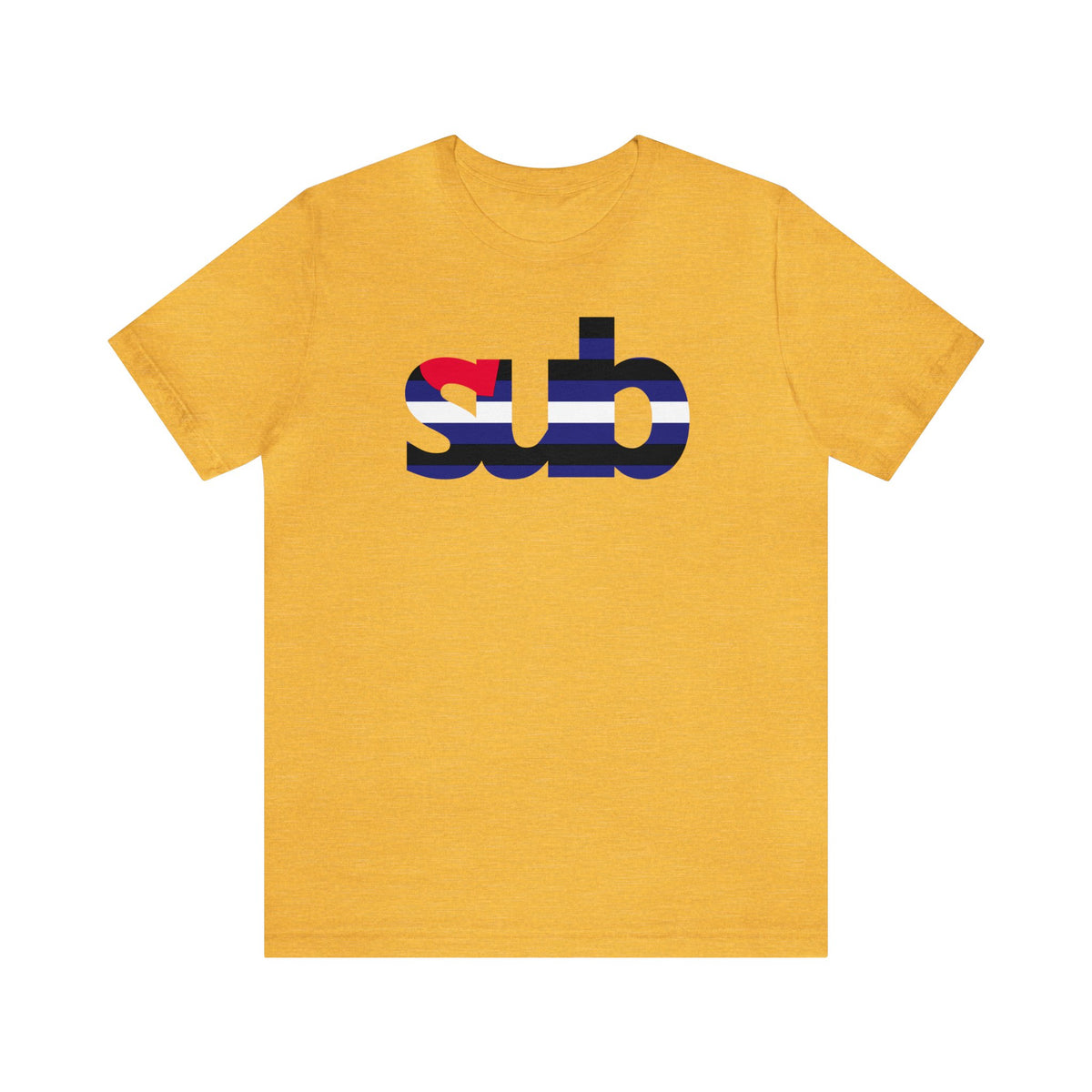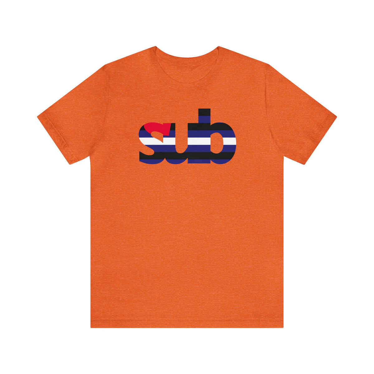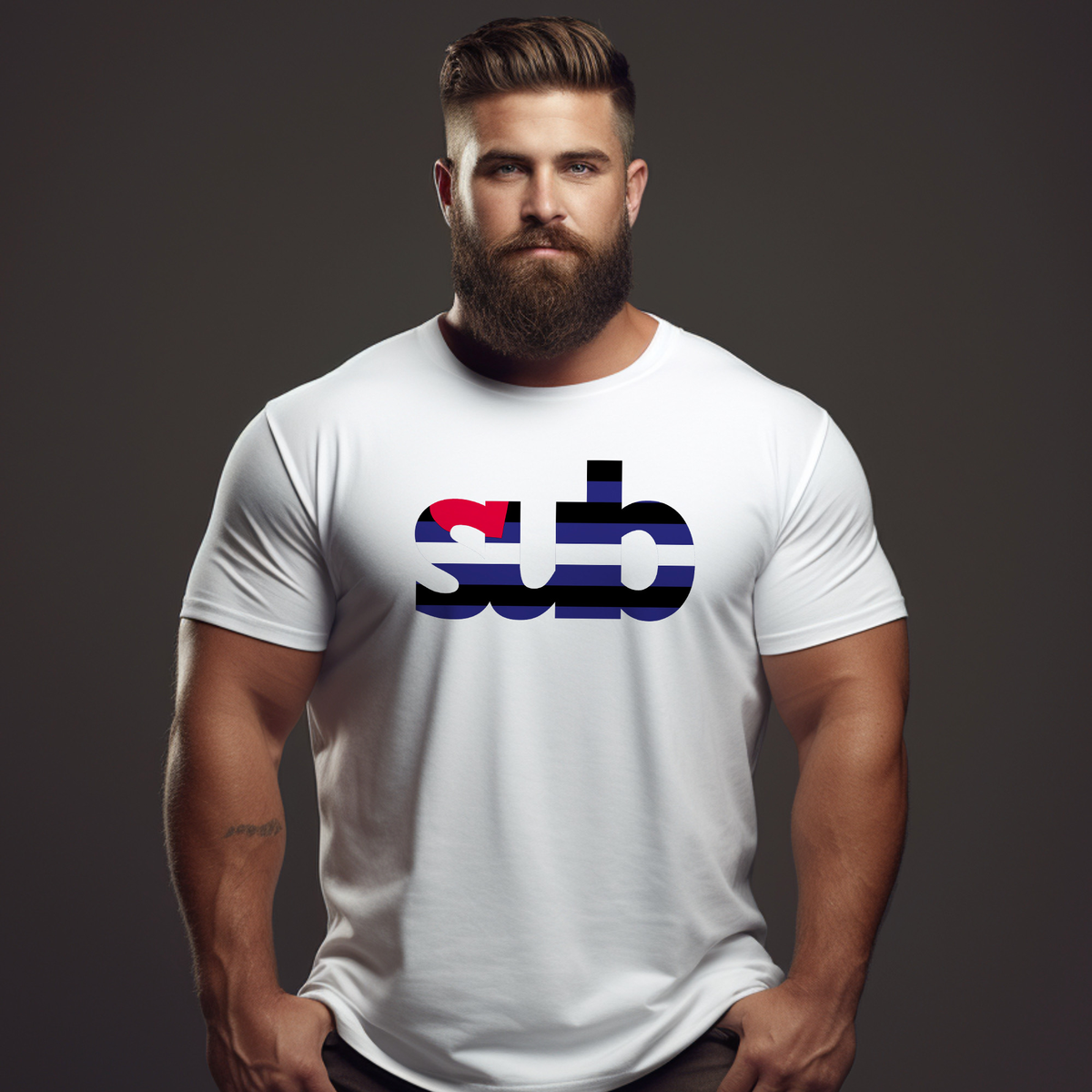 Embrace your role in life with our 'sub' t-shirt, featuring the stunning colors of the Leather Pride Flag. This bold tee is a salute to those who cherish their role in the power dynamics, those who embrace submission, and relish the thrill of surrender. It's not just a tee - it's a declaration of identity, a badge of pride, and a testament to your place within the Leather community. Our sub tee is a powerful symbol of respect, a statement of commitment, and an echo of your unique identity. So why not wear your colors with pride? Slip into your 'sub' tee today and embrace the power that comes with being you.
