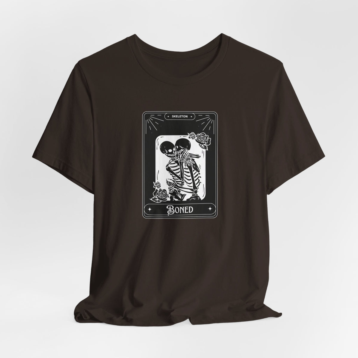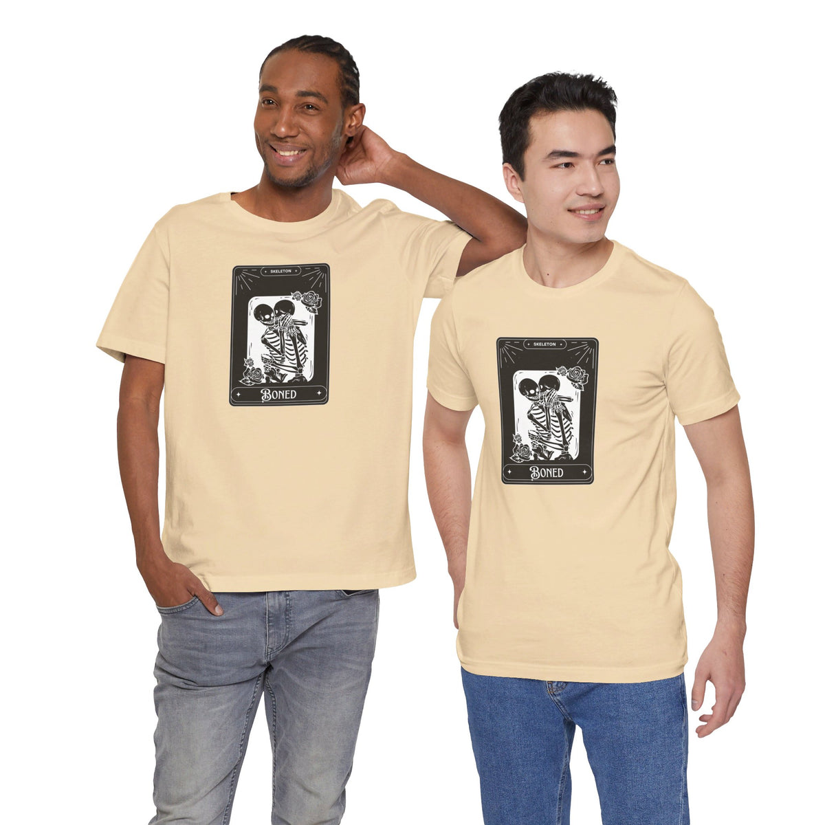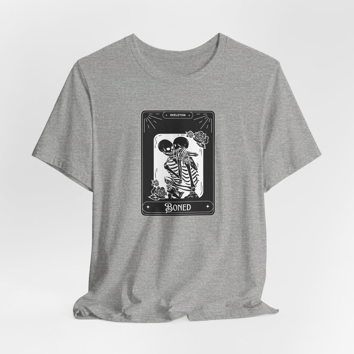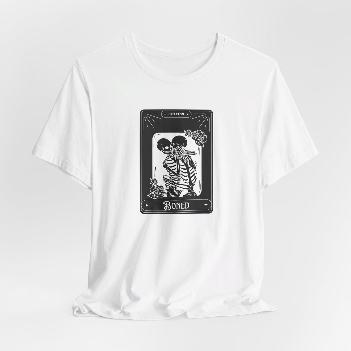 Crafted from soft cotton, this tee is your soft introduction into a realm where humor meets desire, where every bone intertwines with hidden passions awaiting revelation. The 'Boned' tee is not just apparel; it's a playful narrative that kindles the spark of risqué allure. Each wear is a bold journey into a world where love and laughter dance in a skeleton embrace, making every gesture a step closer to unveiling playful desires concealed within bones and beyond.