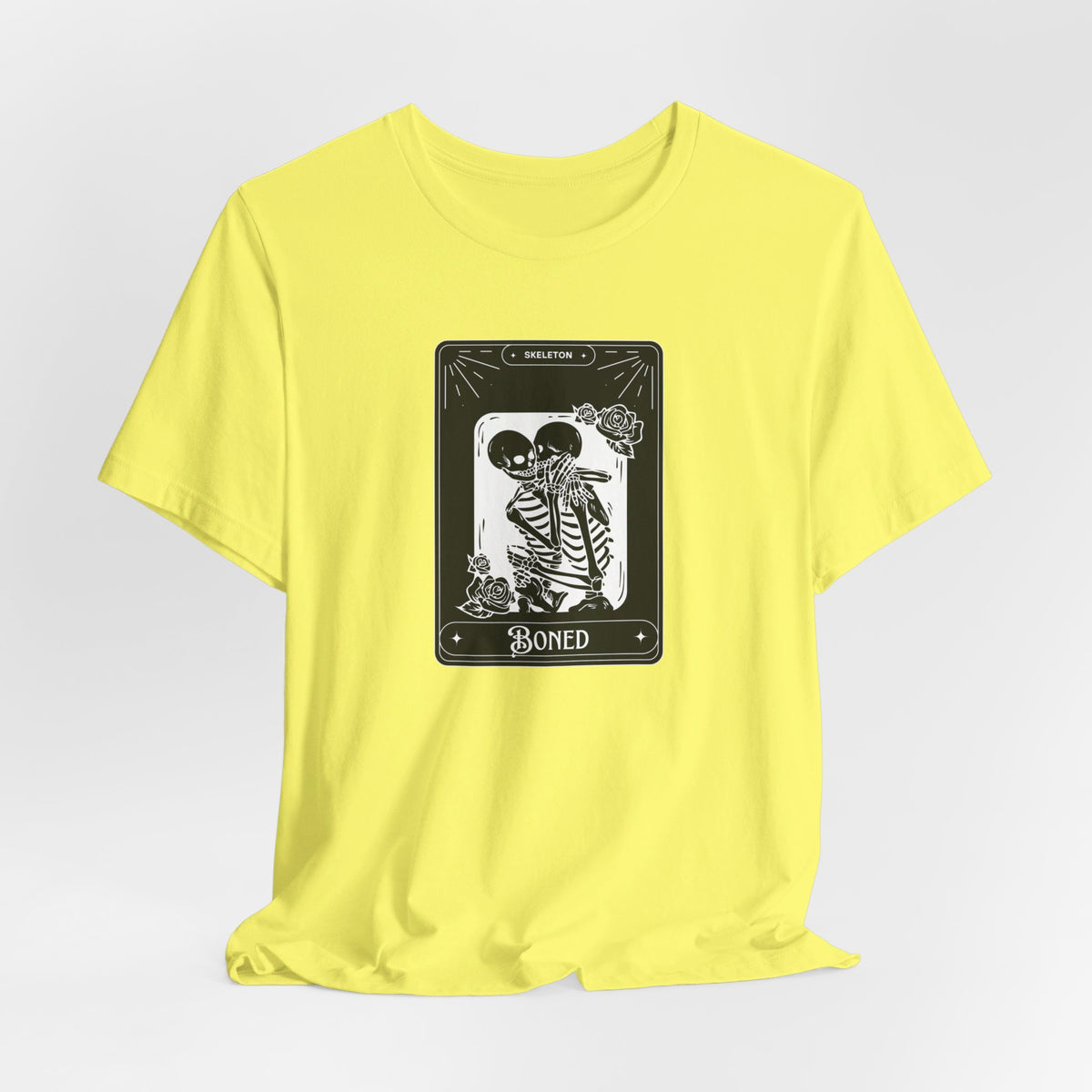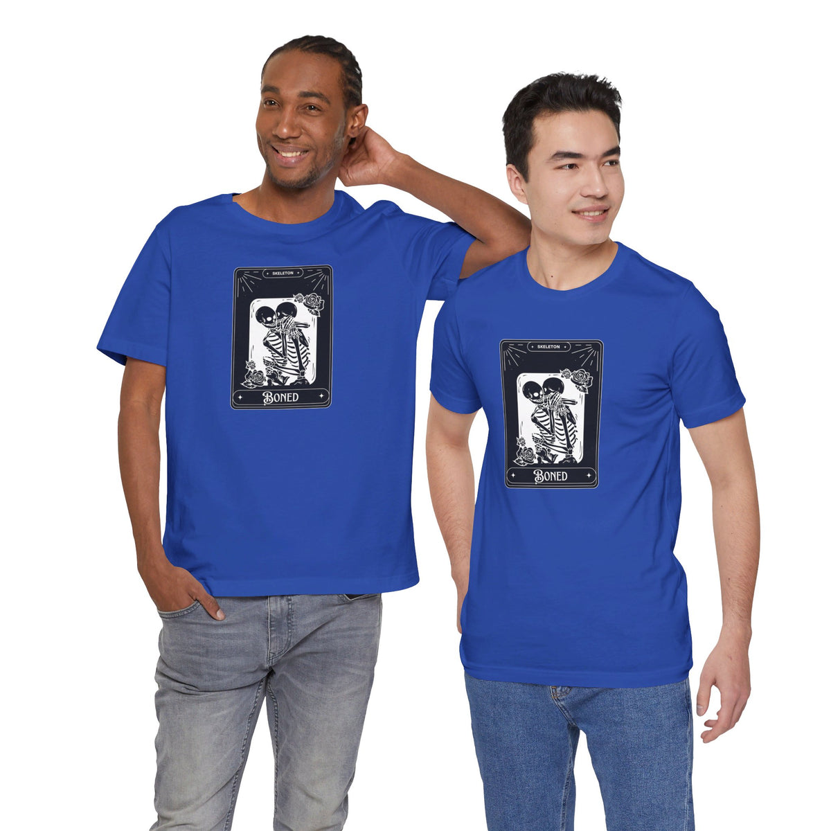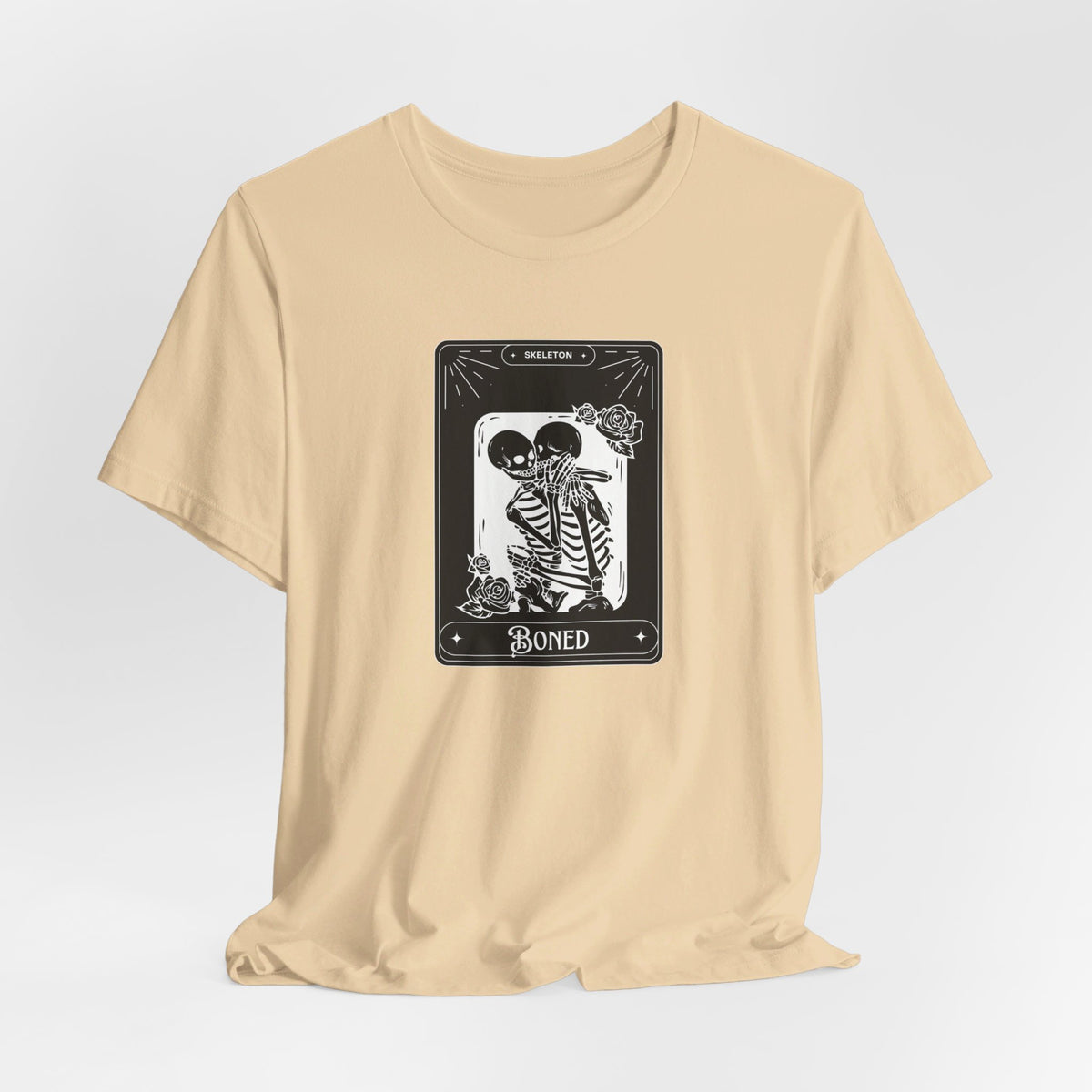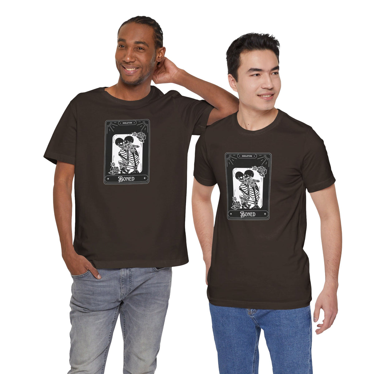 Crafted from soft cotton, this tee is your soft introduction into a realm where humor meets desire, where every bone intertwines with hidden passions awaiting revelation. The 'Boned' tee is not just apparel; it's a playful narrative that kindles the spark of risqué allure. Each wear is a bold journey into a world where love and laughter dance in a skeleton embrace, making every gesture a step closer to unveiling playful desires concealed within bones and beyond.