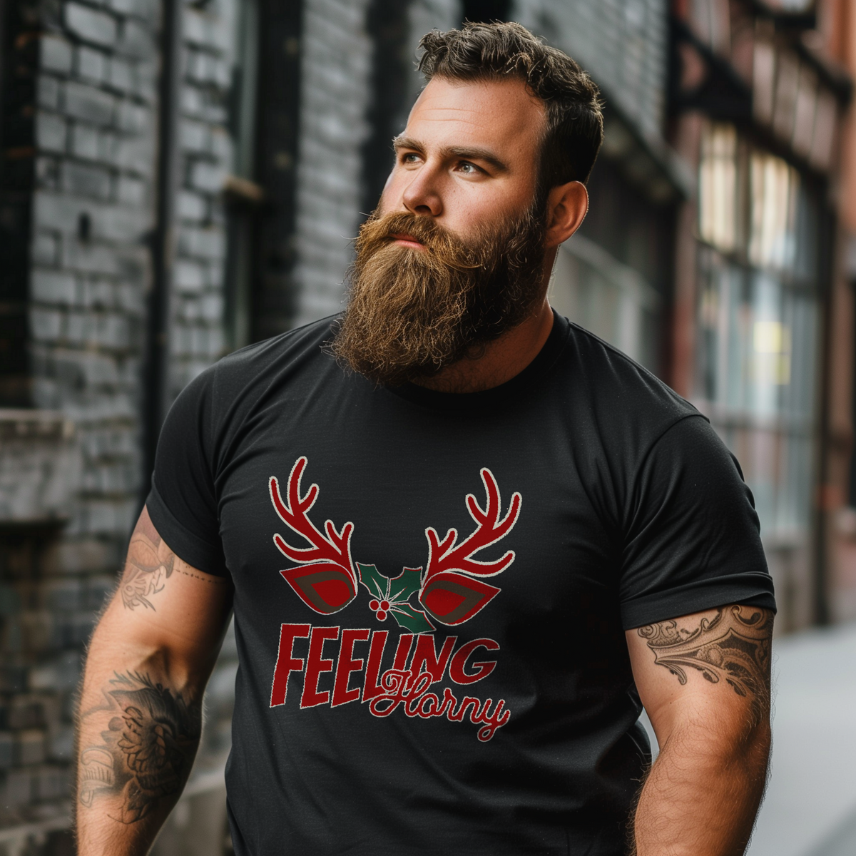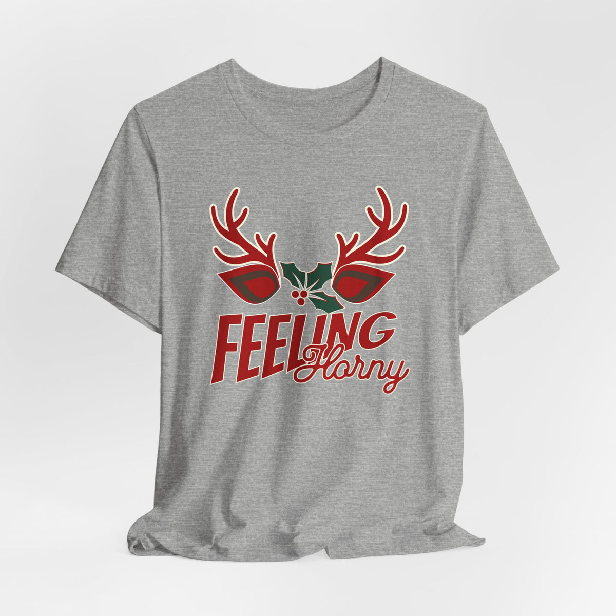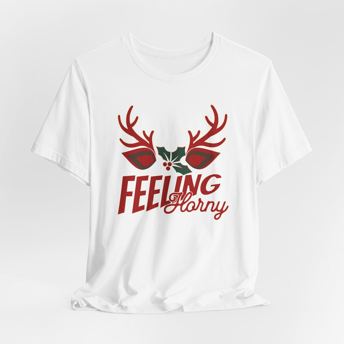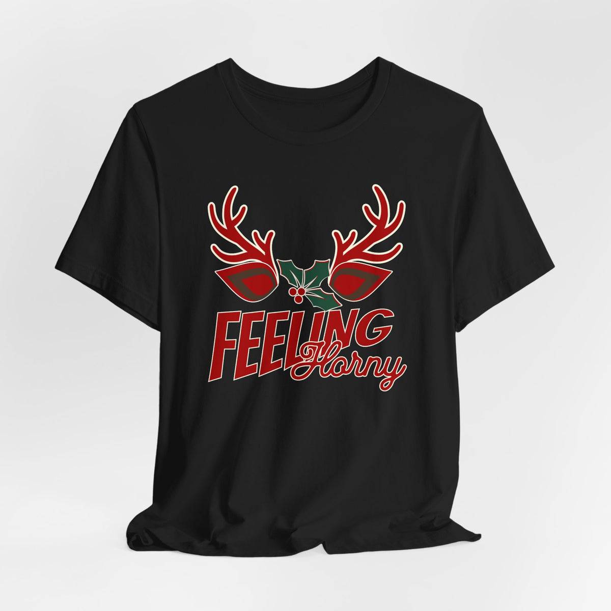 Announce your willingness to mingle under the mistletoe with our “Feeling Horny” tee, bringing a playful twist to Christmas festivities. Featuring bold antlers and a sprig of holly, this design is a fun nod to the holiday season with a hint of sass. Perfect for those who enjoy standing out from the crowd and embracing a little extra mischief under the mistletoe. Whether you’re celebrating at a holiday party or just want to spread some laughter, this shirt is a sure way to turn heads and keep the season light-hearted. Designed for those who aren’t afraid to bring humor to their holiday wardrobe, it’s an ideal gift or personal statement piece that says you’re feeling festive… and maybe a bit “horny” too.