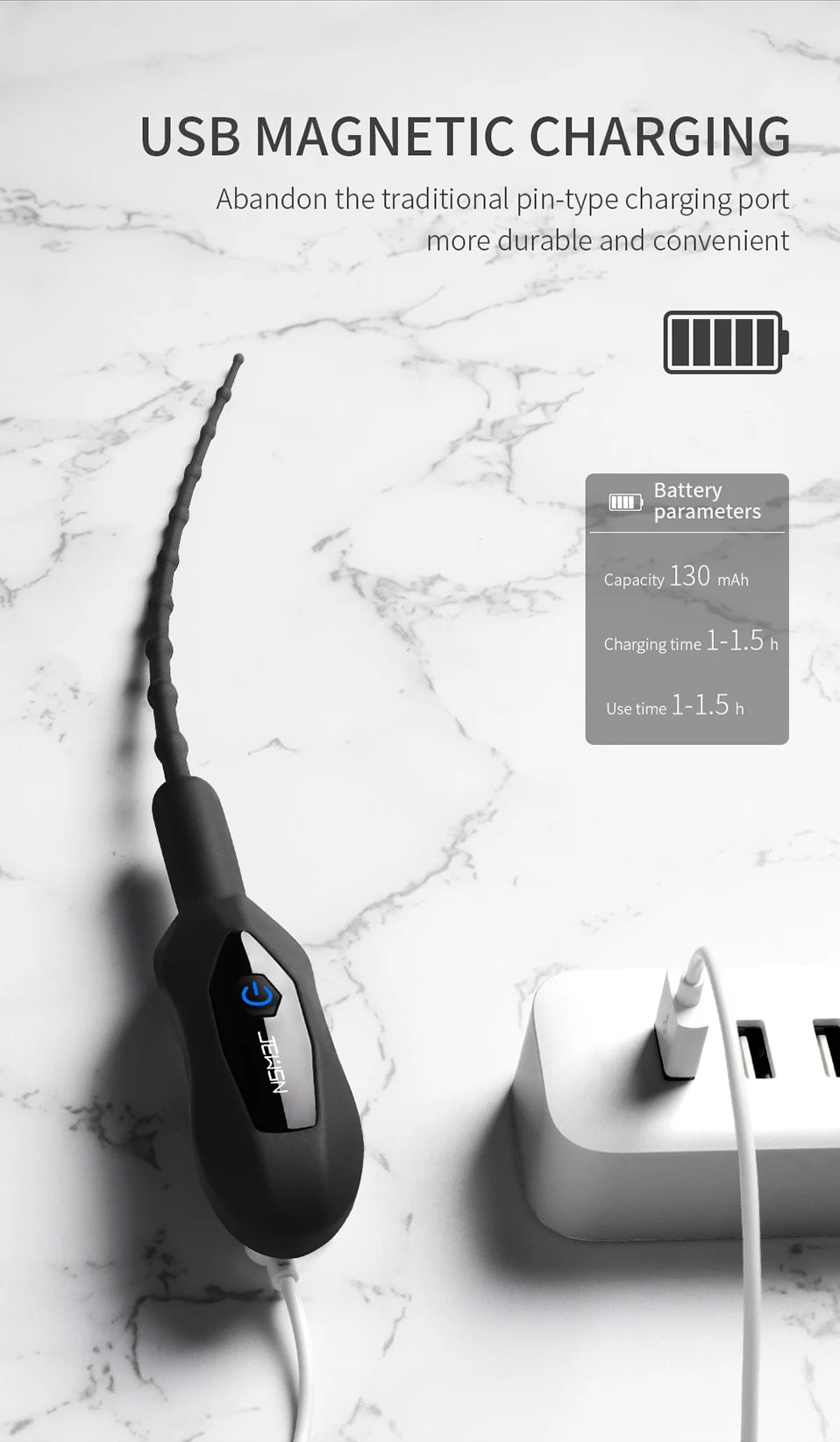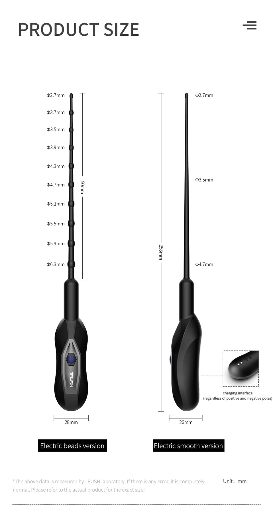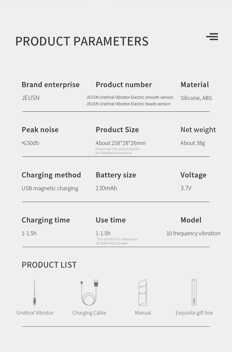 Introducing the JEUSN Soft Silicone Urethral Vibrator, designed for those who seek the ultimate in sounding pleasure. Crafted from premium silicone and ABS, this sleek device offers unparalleled comfort and stimulation. Whether you’re a seasoned player or a curious novice, the JEUSN Urethral Vibrator is perfect for all levels of experience. With its USB magnetic charging system, you can enjoy up to 1.5 hours of continuous play after a quick 1-1.5 hour charge.