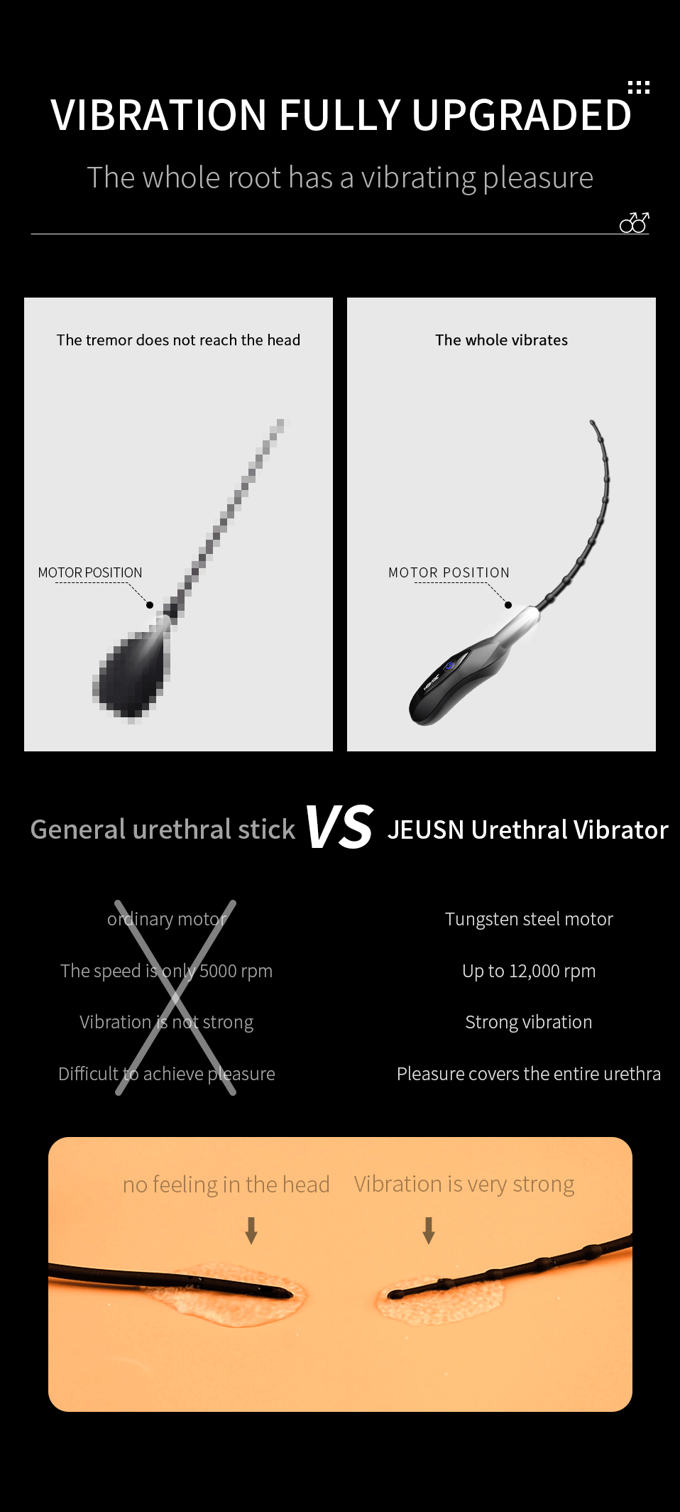 This versatile vibrator features 10 frequency vibrations to provide a customizable experience. Choose between the smooth version for a classic glide or the beaded version for an added thrill with every insertion. The beaded texture heightens sensitivity, delivering waves of pleasure with each movement. Embrace your desires and elevate your urethral play with the JEUSN Soft Silicone Urethral Vibrator, your new go-to for intense and satisfying sessions.