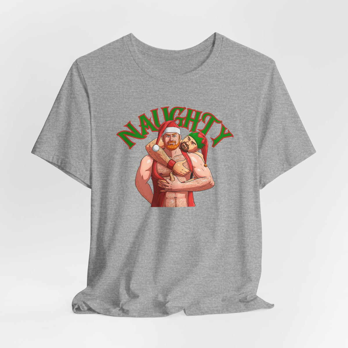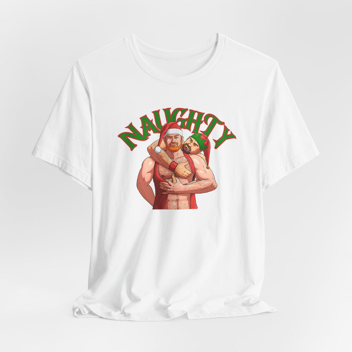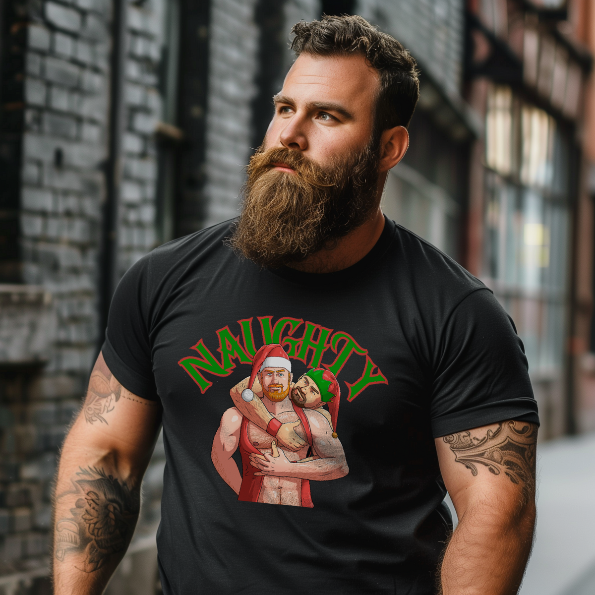 Whether you're looking to make a bold statement at a festive gathering or just want to add a touch of playful charm to your winter wardrobe, the 'Naughty' tee is your go-to choice. It's a cozy, comfortable, and stylish option for holiday evenings. So, embrace the naughty side of the season and make a memorable impression wherever you go!