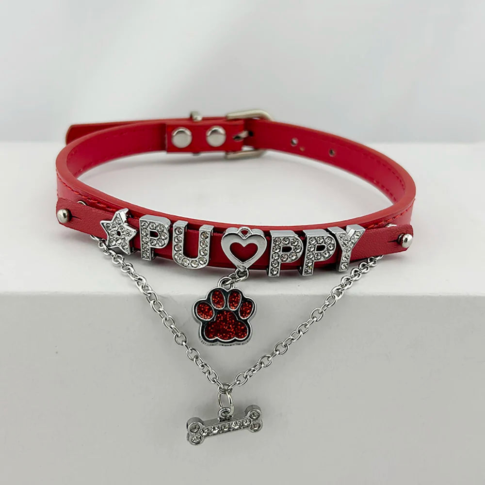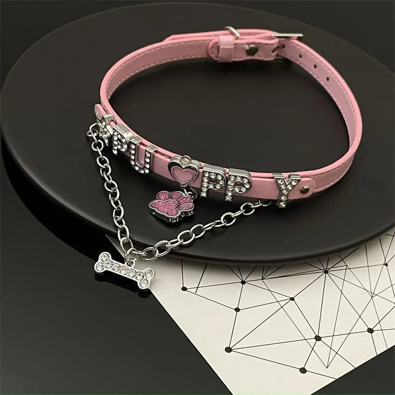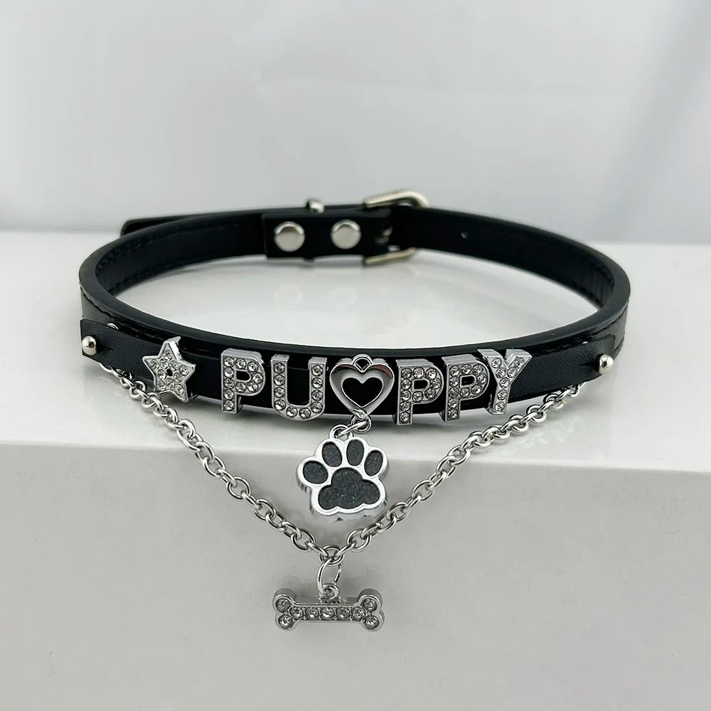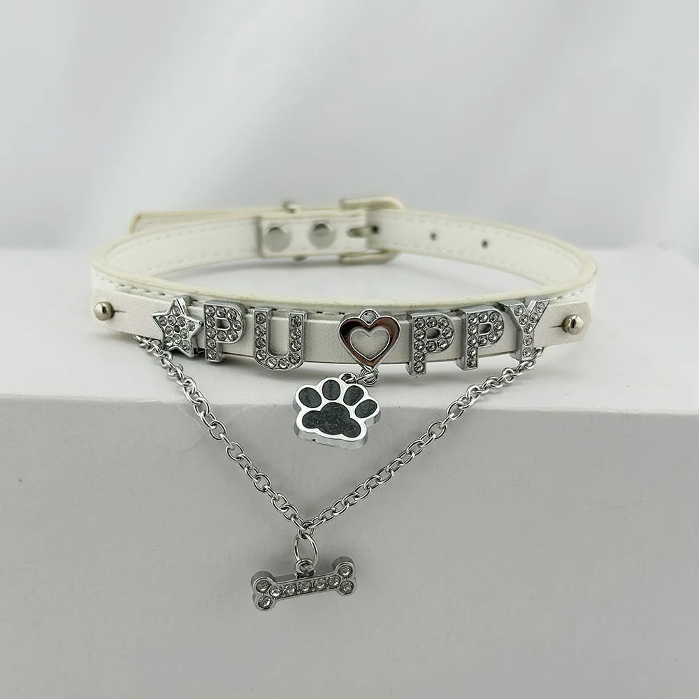 Show off your playful side with the Personalized Rhinestone Puppy Collar, created to add a touch of sparkle to every little pup’s world. Crafted from thick faux leather, it features glimmering rhinestone letters that can spell out your favorite puppy name or playful phrase from 1 to 7 letters (please put phrase in notes or email us with your 1-7 letters customerservice@twistedjezebel.com). The adjustable length (32–40 cm / 12.6–15.7 inches) and slim 1.2 cm (0.47 inches) width make it a comfy fit for most neck sizes, while the zinc alloy settings ensure long-lasting shine.