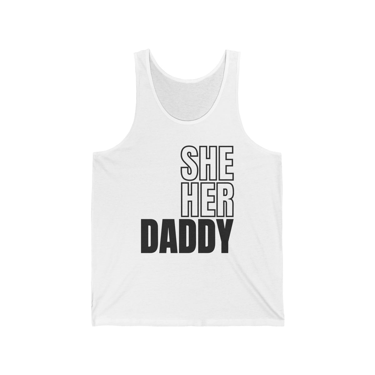Introducing the “She Her Daddy” tee, a bold statement for those who proudly own their identity and take charge with confidence. This shirt celebrates the strength and allure of women who step into the role of ‘Daddy’ in the lesbian community. With its striking, minimalist design, it’s perfect for anyone who exudes power, style, and a little bit of swagger.