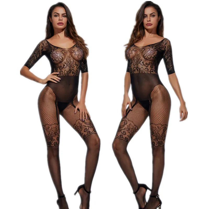 Step into the spotlight with our Sissy Stockings Body Suit, where style meets sensuality. Crafted from a blend of 88% Spandex and 12% nylon, this body-hugging masterpiece offers flexibility and strength, designed to accentuate curves with a cling that feels just right. The knitted netting teases the imagination, offering glimpses of what lies beneath while enveloping you in a pattern that’s as intricate as it is provocative. Soft, high-elasticity material ensures a fit that’s snug yet forgiving, stretching effortlessly from 27 inches to 33.5 inches, catering to a range of beautiful body types.