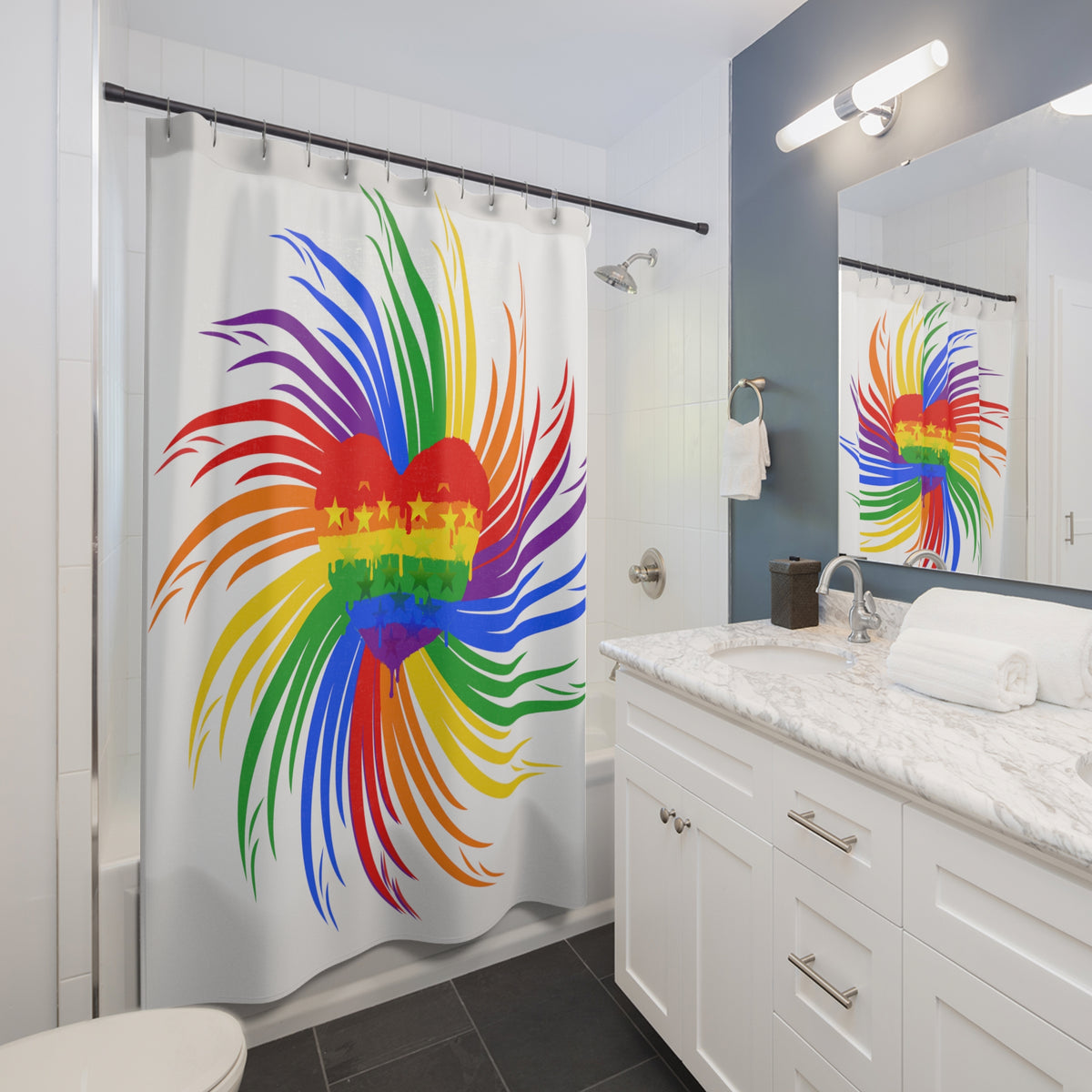 Experience the captivating beauty of our 'Spiral Waves of Pride' shower curtain. Delight in the mesmerizing spiral waves that emanate from behind a sparkling heart, creating a visually stunning display of pride. This 71" x 74" curtain symbolizes the boundless energy and constant evolution of the LGBTQ+ community. Crafted from high-quality, water-resistant polyester, it combines durability with style, ensuring a long-lasting and eye-catching addition to your bathroom. Immerse yourself in the radiant energy of the 'Spiral Waves of Pride' shower curtain and let it inspire a sense of empowerment and unity every time you step into the shower. Make a powerful statement of pride with our 'Spiral Waves of Pride' shower curtain and celebrate the ever-growing and vibrant spirit of the LGBTQ+ community.