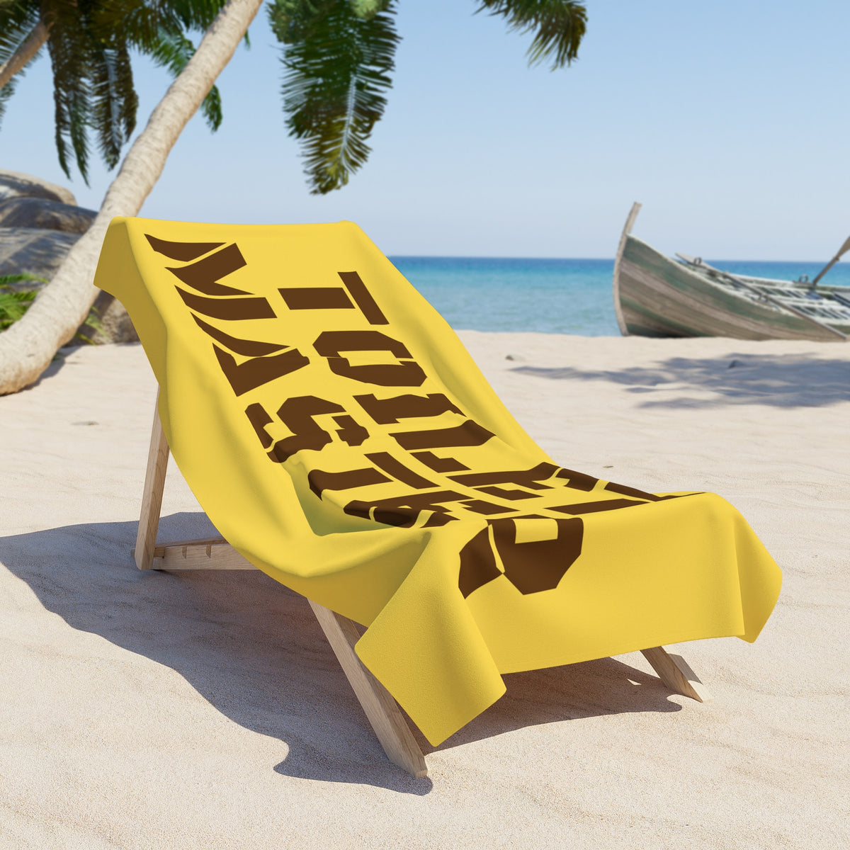 - This heavyweight towel feels extra lush to the touch with its polyester print side, and cotton loop backing for durability.