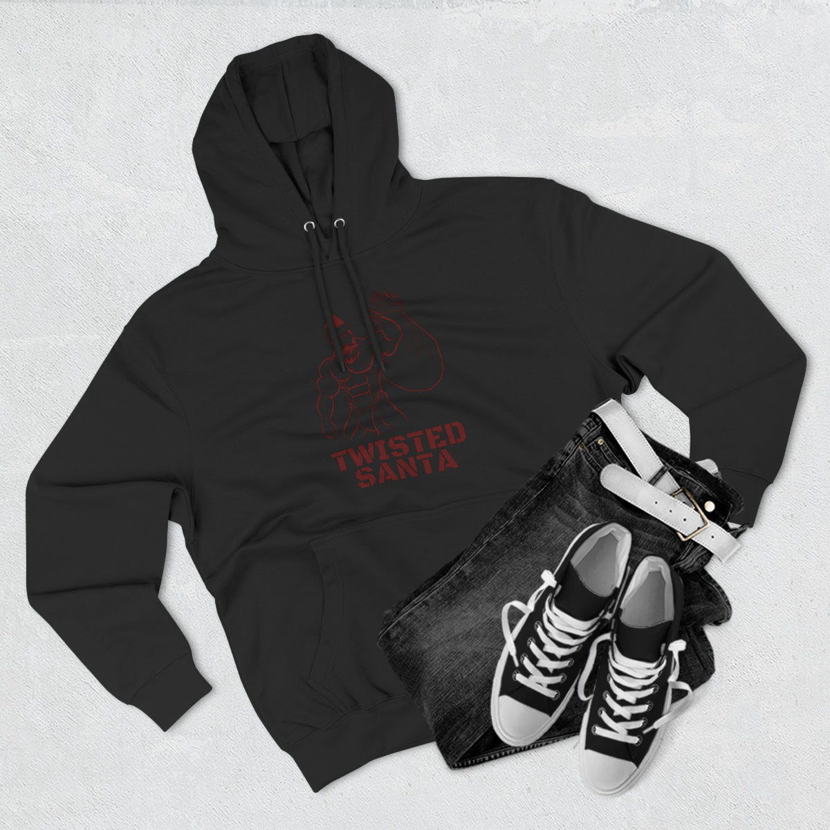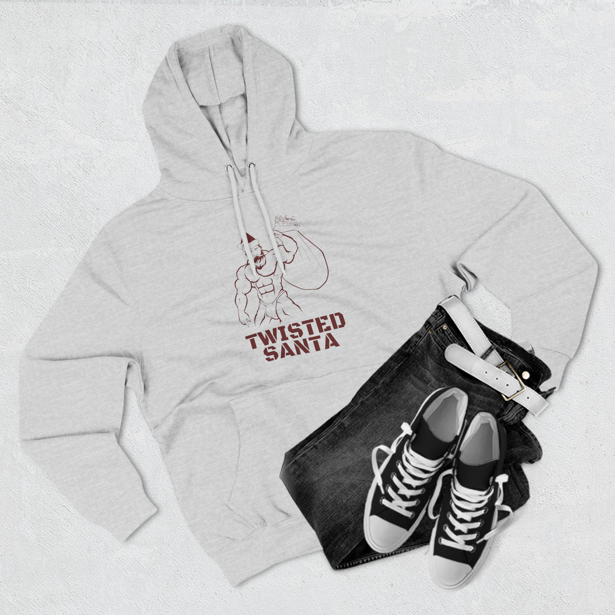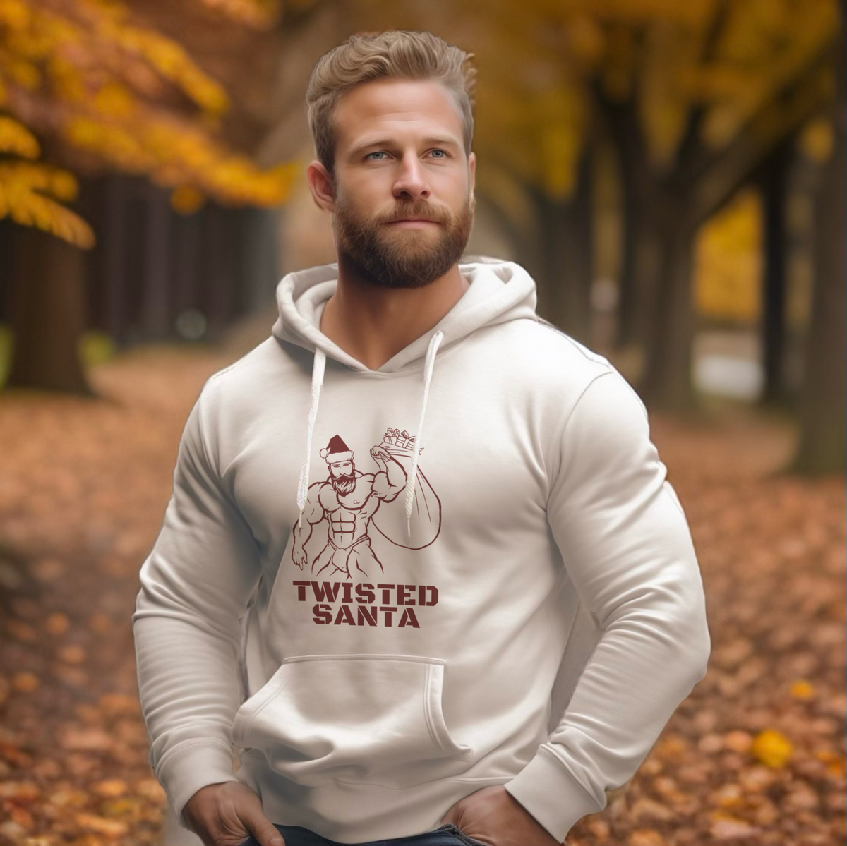 You don't need to get twisted because you are already there. Embrace the playful side of the holidays with our "Twisted Santa" hoodie. This unique design showcases a rugged outline drawing of a muscle-bound Santa, complete with a festive Santa's hat and confidently carrying a colossal sac of toys. But hold on tight, because this Santa is ready to spread more than just what's in his sac! Whether you're aiming to make a bold statement at a festive gathering or simply want to infuse your winter wardrobe with a playful touch, the "Twisted Santa" hoodie is the perfect choice.