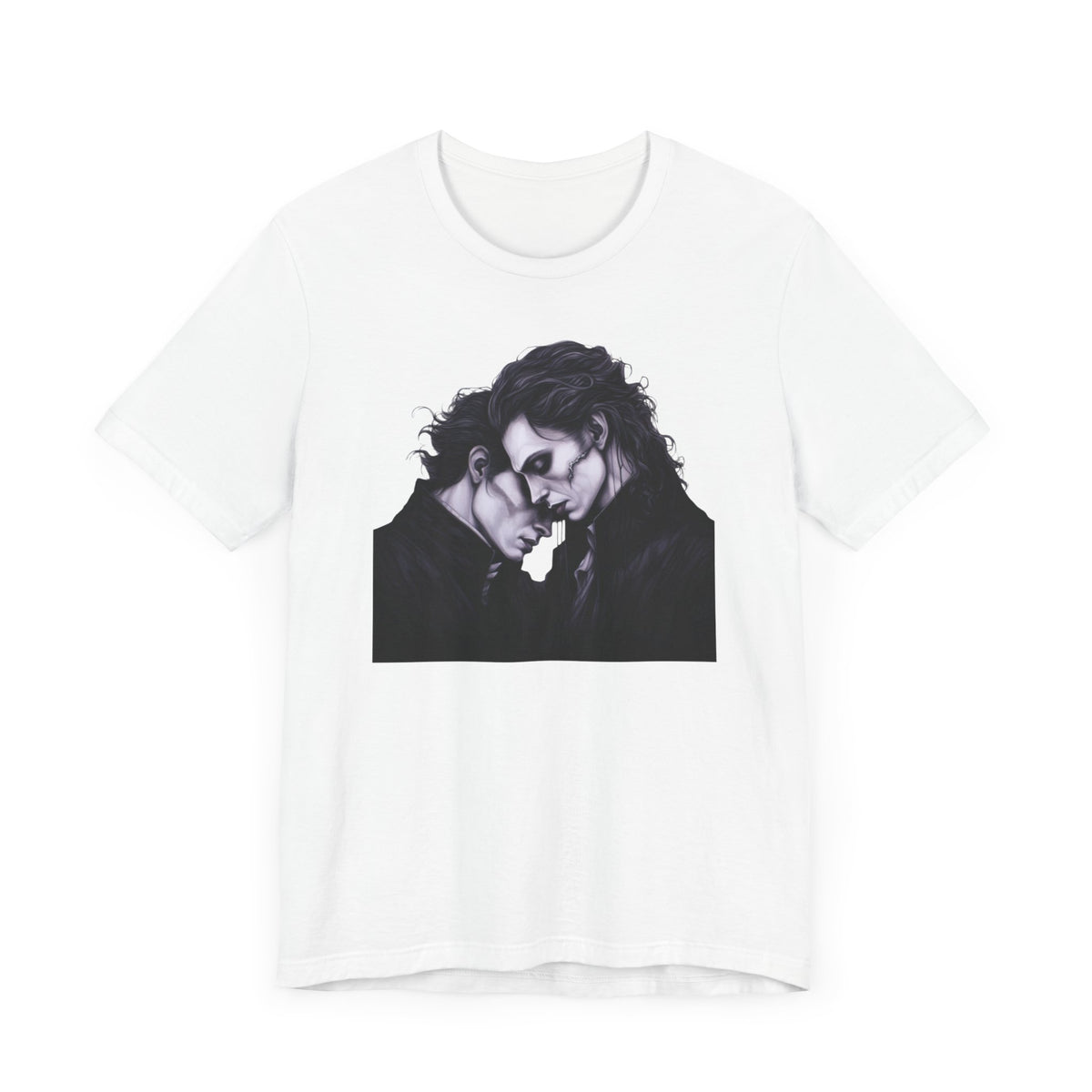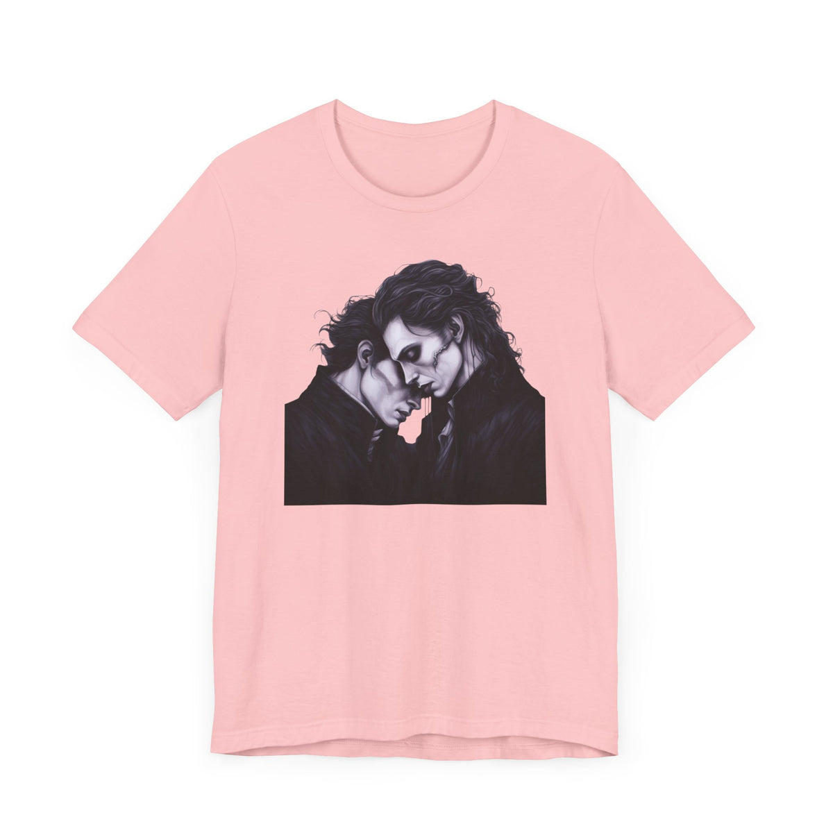 This tee speaks to those with haunted hearts, especially within the LGBTQ+ community. It's a reminder that while our pasts may be filled with scars, we rise stronger, resilient, and unafraid to love deeply. Wear the Vampire Love Tee as a tribute to the undying bond that persists through darkness, proving that love, in its purest form, is truly eternal.