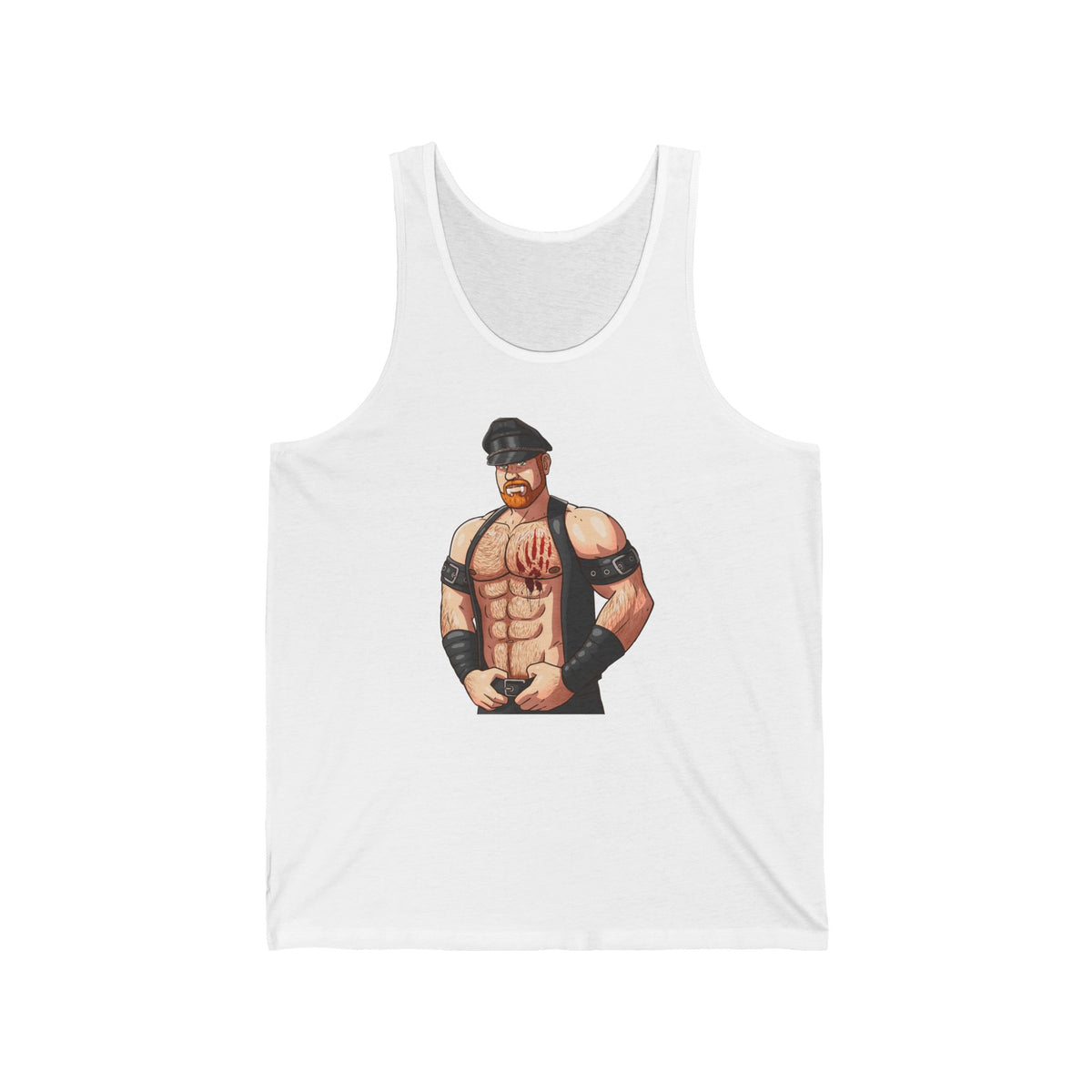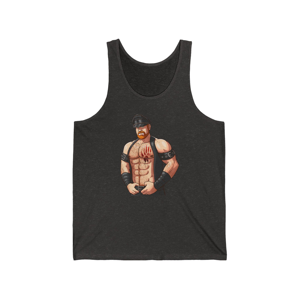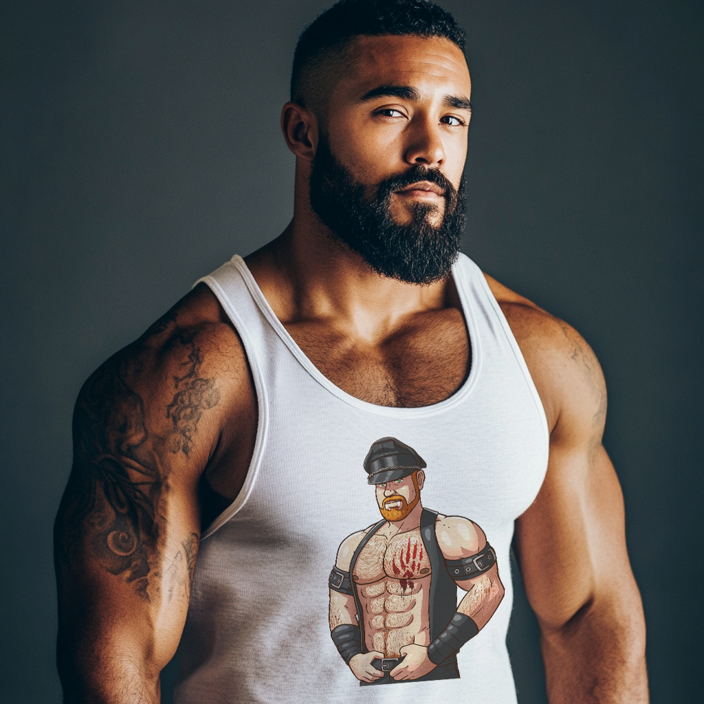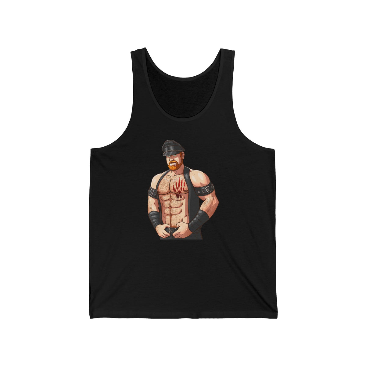 Adorned with a ginger-haired, vampire, muscle bear clad in leather, this tee is a bold nod to the alluring strength and charm of the undead among us. The ‘Vampire Shifter Leatherman’ tee is an irresistible invitation to admire and celebrate the masculine allure. So why shy away when you can succumb with the night walker of your dreams? Order your 'Vampire Leatherman' tee today and let your soul roar!