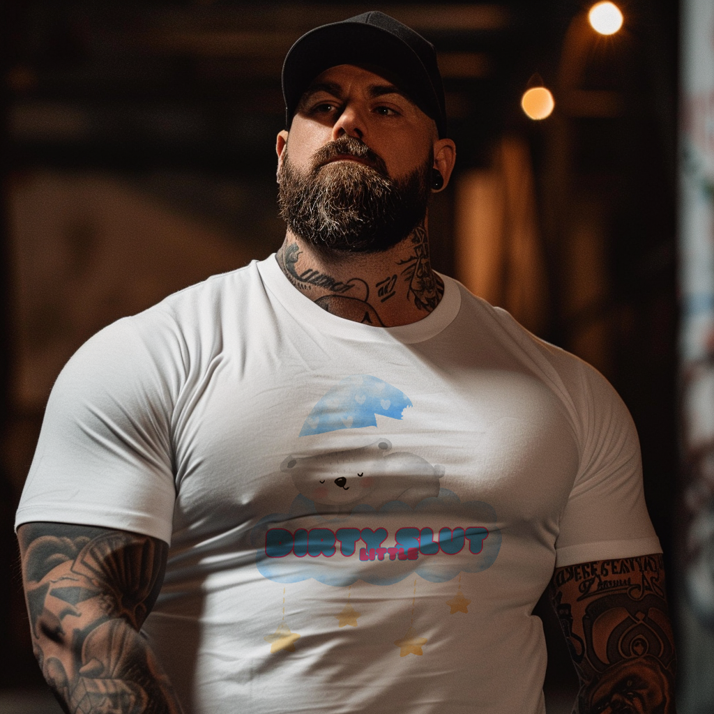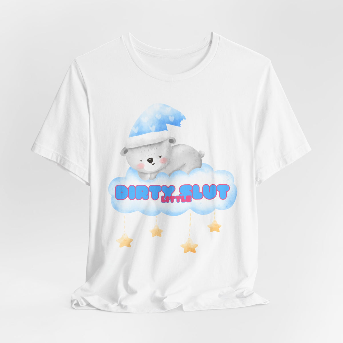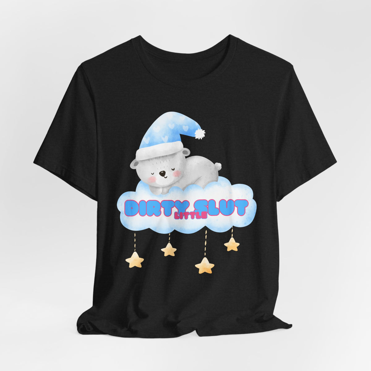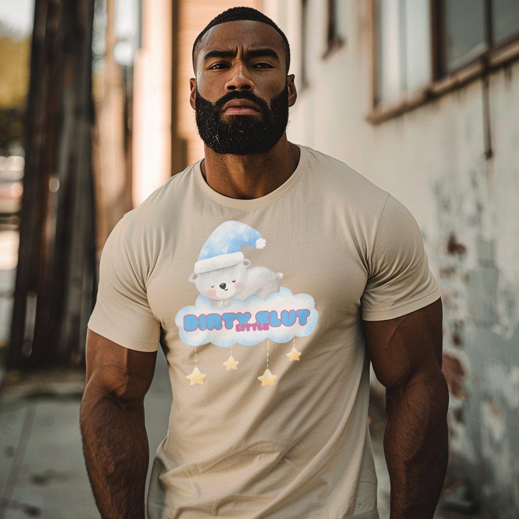 Snuggle up in our irresistibly adorable "Dirty Little Slut" Tee, designed to bring out your playful side. This flirty design features a cute, sleepy bear nestled on a cloud, wearing a cozy nightcap and surrounded by dangling stars. Made from the softest material, this tee is perfect for those who love a touch of sweetness mixed with a bit of naughty fun.