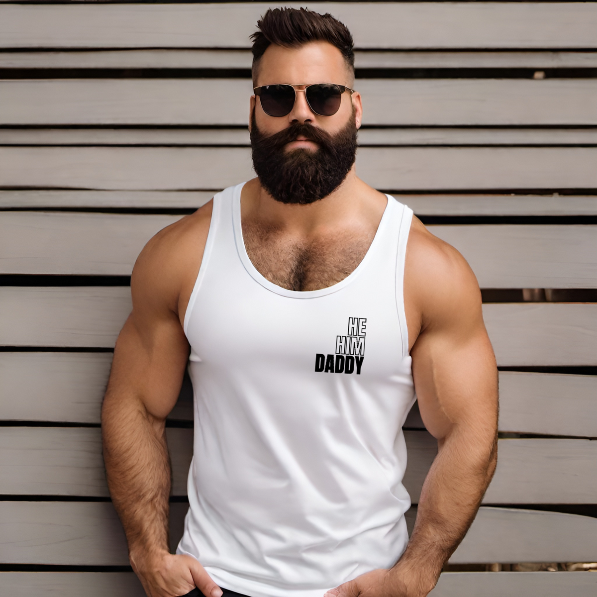 Unleash the potent prowess of your pronouns with the Bella + Canvas 'He/Him/Daddy' tank. Made for the defiant, dominant daddies of the world, this tank carries a punch of audacious authenticity. Crafted with the Bella + Canvas 3480 quality you trust, it endures your most hectic days while maintaining an unbeatable softness and fit. Let this tank stand testament to your bold, unflinching self-definition. Wear your pronouns with pride, announce your authority, and make no apologies for your fearless identity. Welcome to the world of unapologetic expression, you audacious, wonderful Daddy!