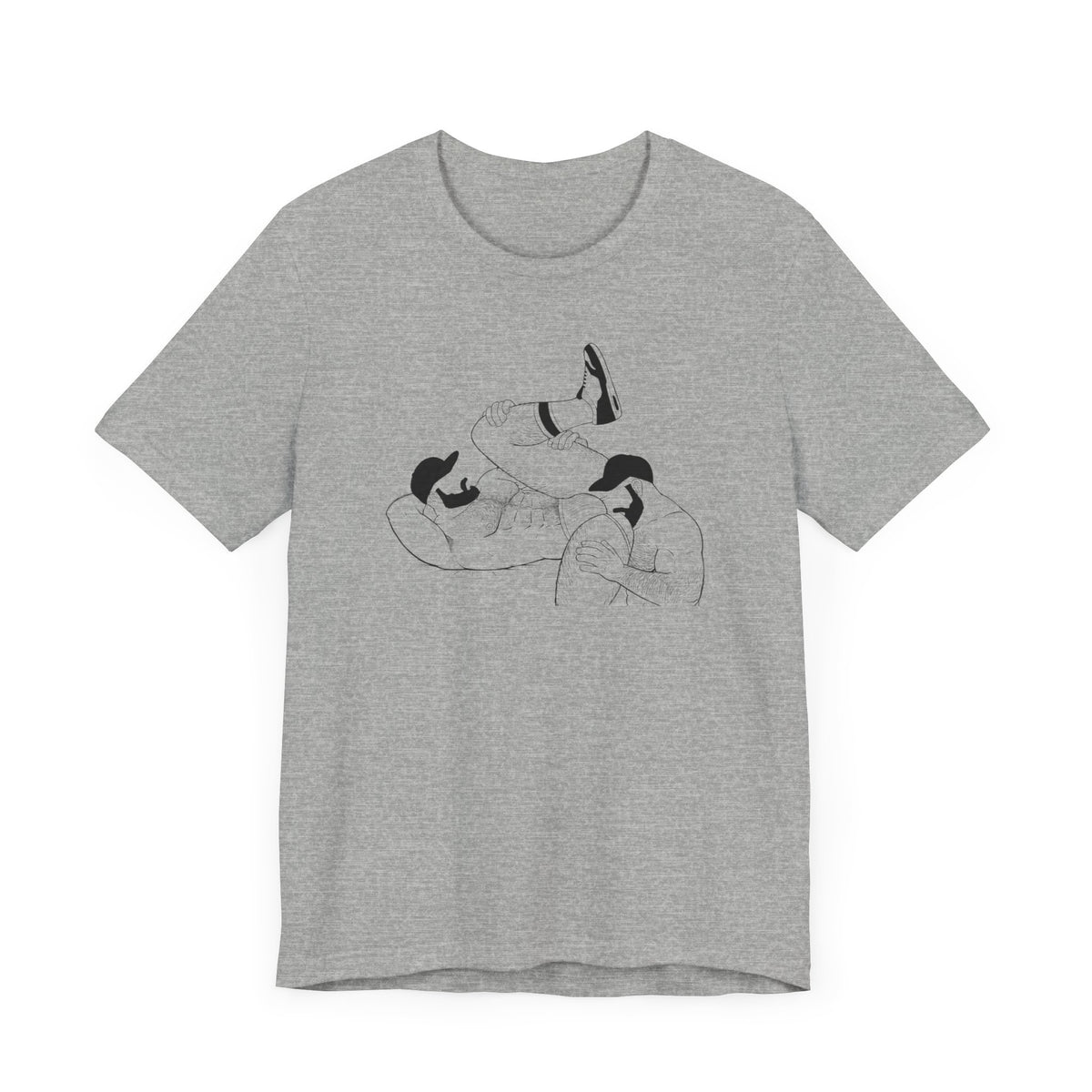 - This classic unisex jersey short sleeve tee fits like a well-loved favorite. Made from soft premium cotton (heathers include polyester), it features a quality print that will make you fall in love with it over and over again. The tee has ribbed knit collars to bolster shaping, and the shoulders are tapered for a better fit over time. Dual side seams help the garment retain its shape for longer.