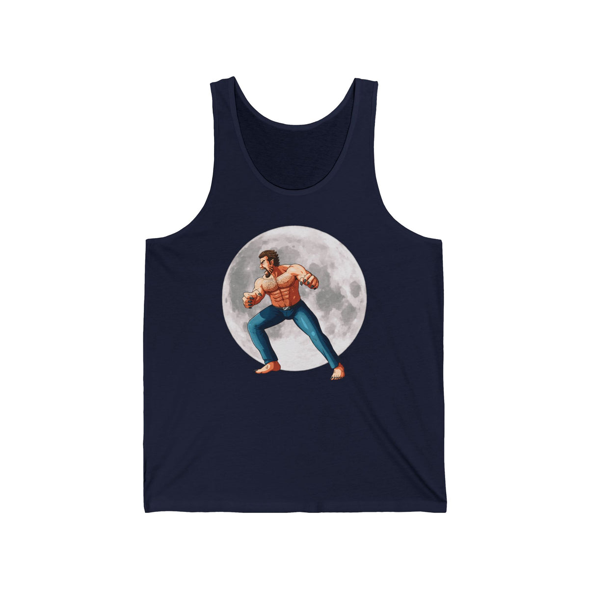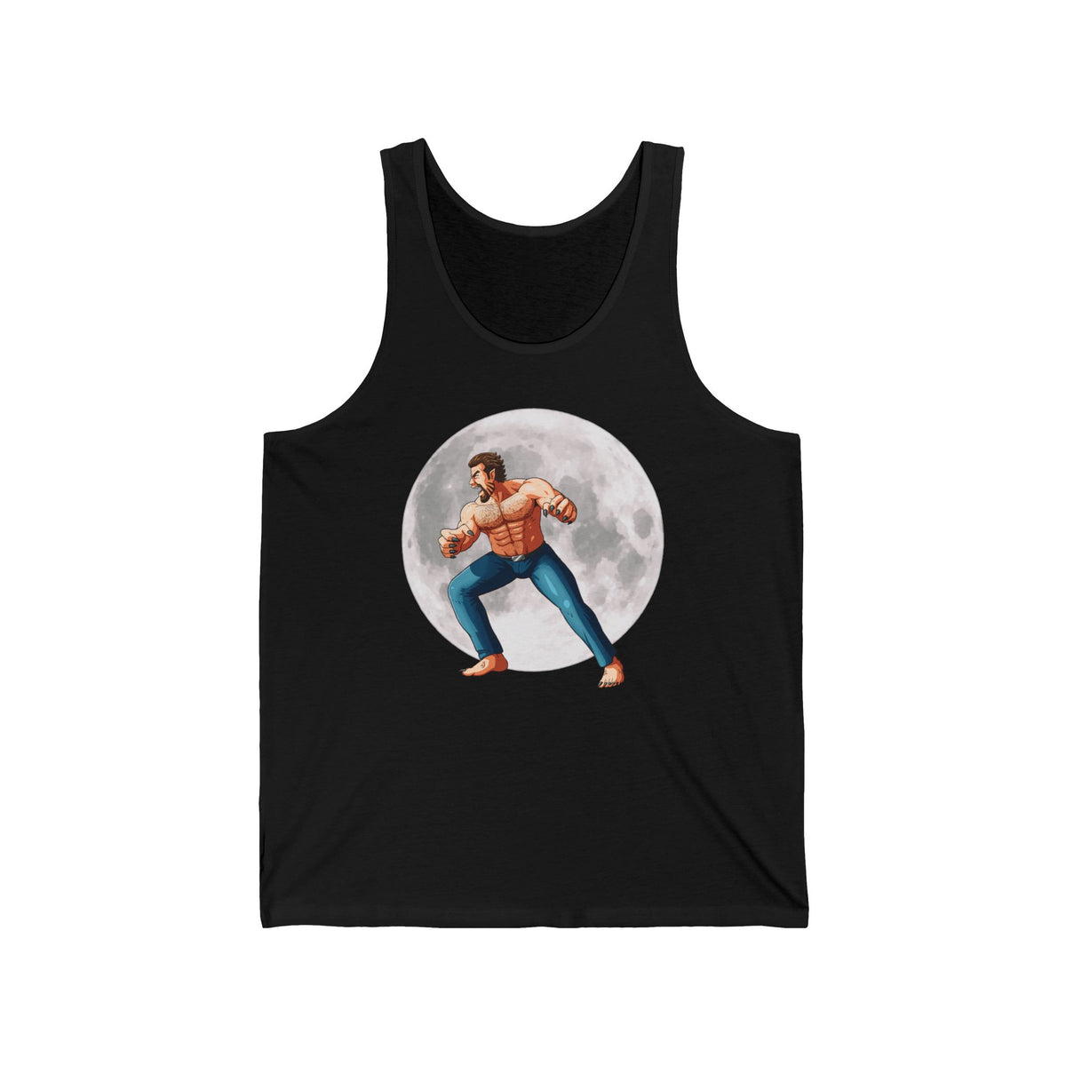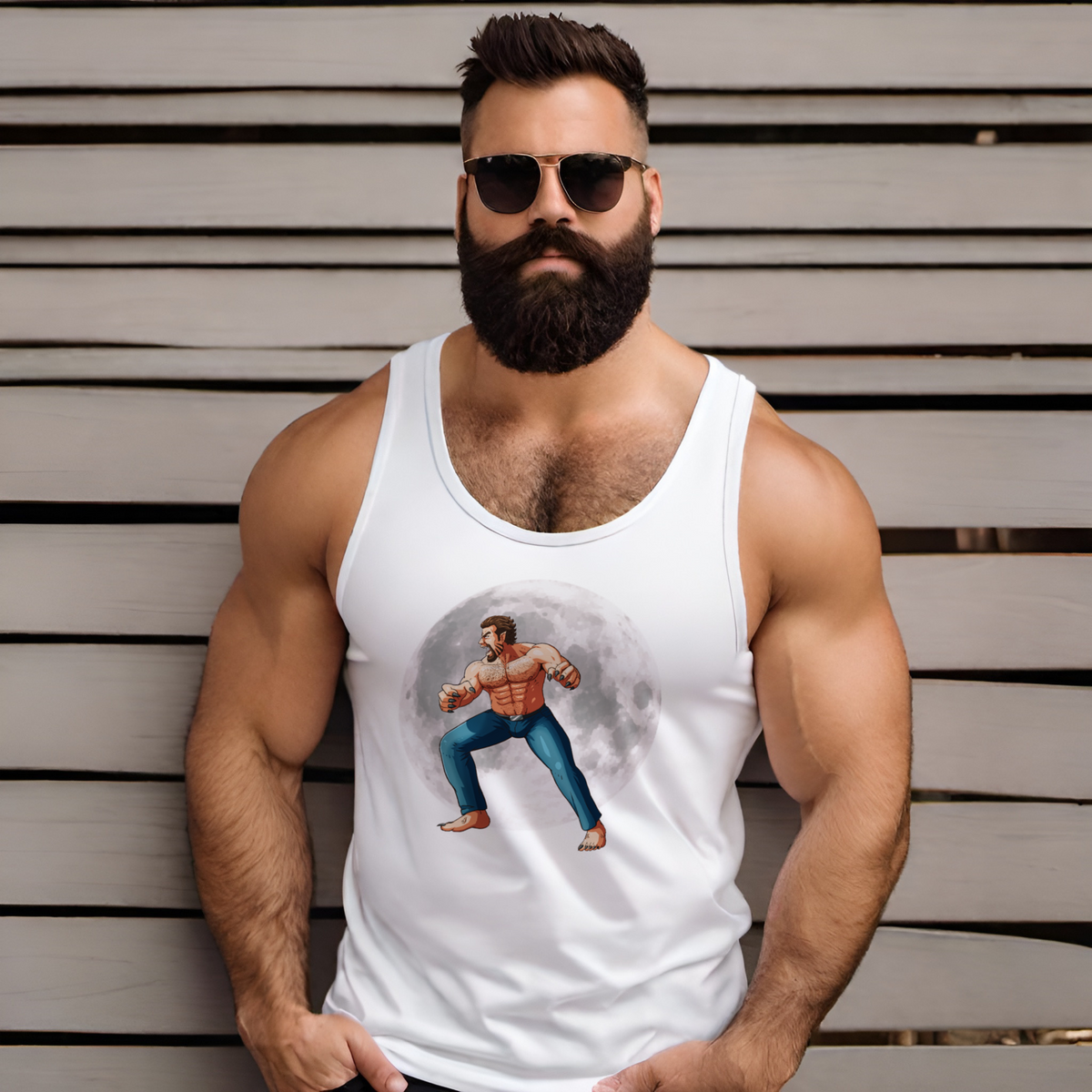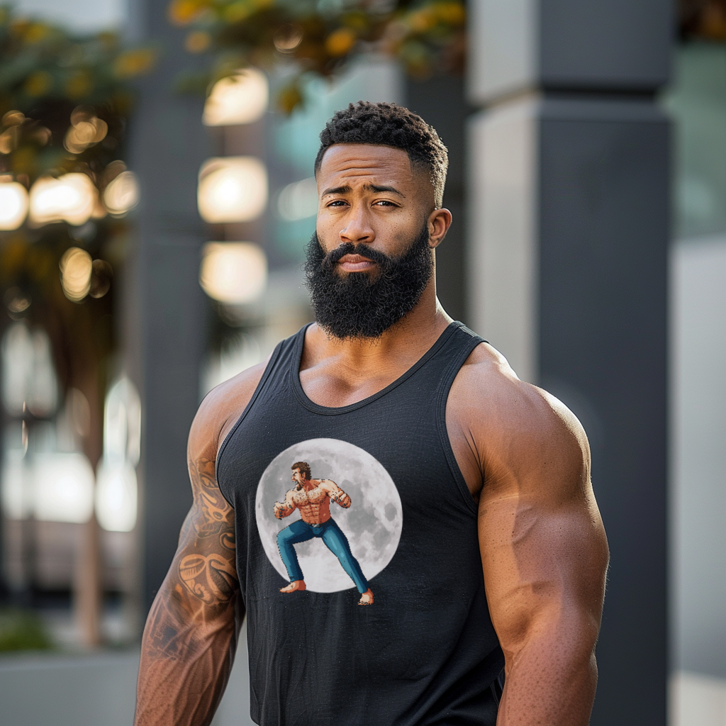 Underneath the shimmering cloak of night, a legend returns, more ferocious, more alluring, captured in the essence of the WereDaddy II Tank. The side profile of this moon-kissed beast captures a snapshot of raw energy and undeniable sex appeal, a figure carved from moonlight and desires, a sight to behold and to be held. In this frame, the werewolf is a maestro of the night, orchestrating a symphony of growls and sultry whispers that speak to the primal instincts within us all.