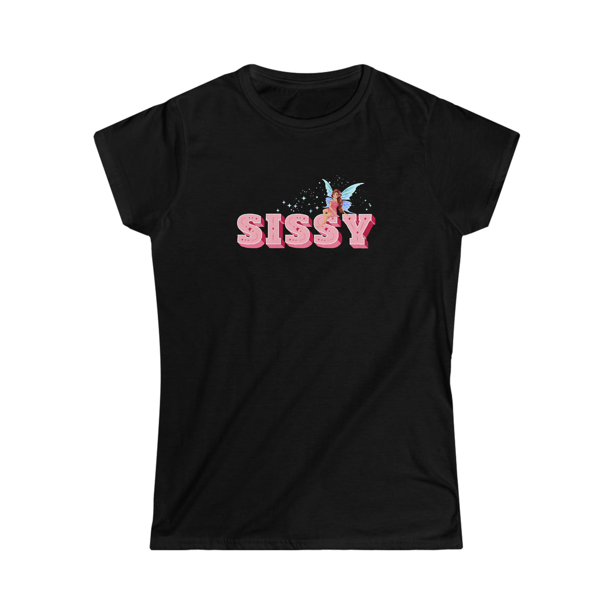 Discover enchanting allure with our Gildan 64000L Fairy SISSY Tee! This soft-touch, premium cotton tee boasts a lively and playful motif. Front and center is the word "SISSY", highlighted by a meticulously crafted fairy perching on the final 'S'.