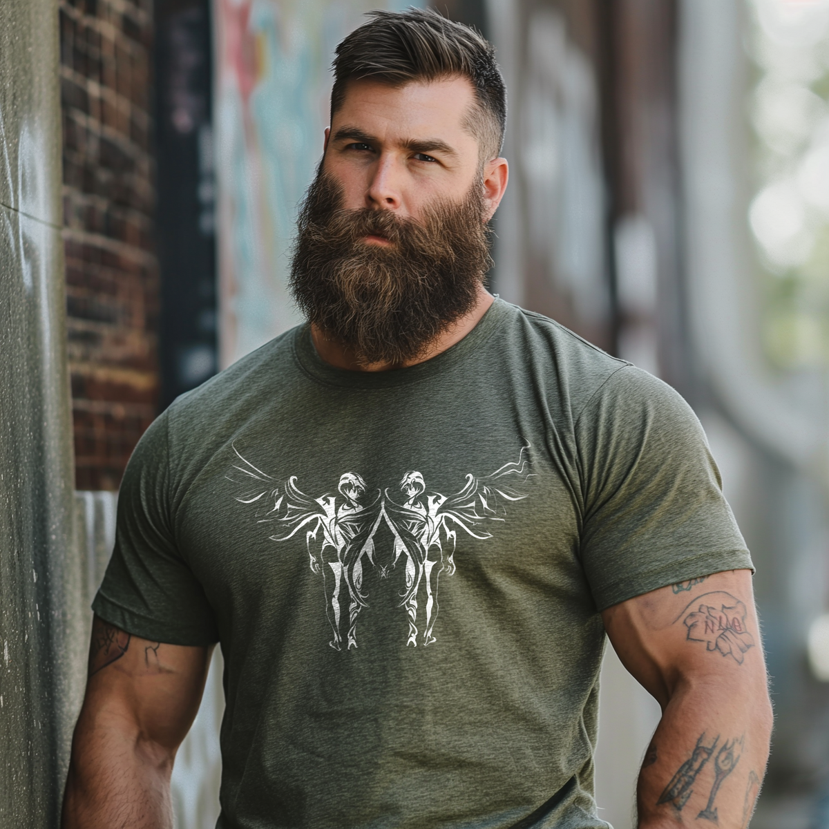Step into a divine dimension of love with our 'Angels in Love' tee. Two male angels walk hand in hand into eternity. A beautiful portrayal of celestial love, this tee is a heavenly declaration that love transcends all barriers, all judgments, all realms. Join the journey, hand in hand, heart to heart, angel to angel.