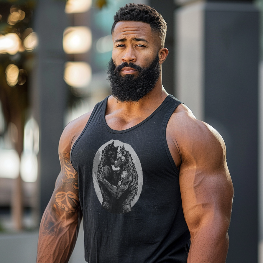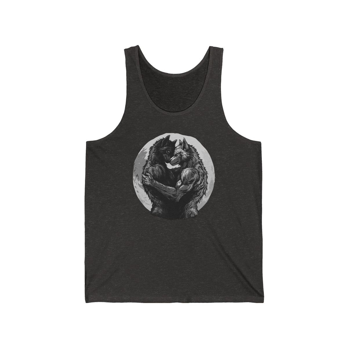 Perfect for those who feel the pull of the moon and thrive in the beauty of unrestrained affection, this tank makes a statement beyond just the artwork. Whether it's a symbol of strength, solidarity, or the warmth of love found in unexpected places, let this tee be a howl to the night—one that echoes love, passion, and the primal instinct to connect.