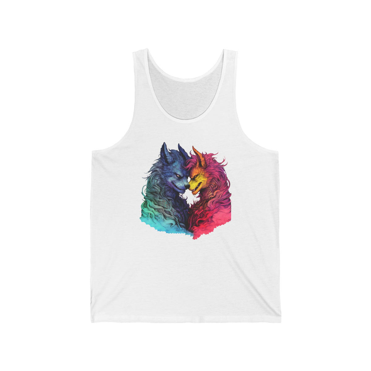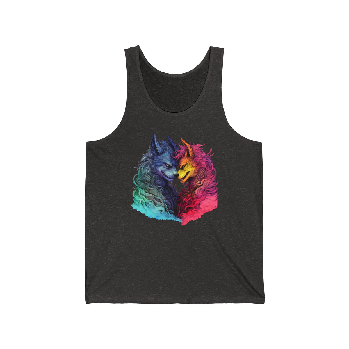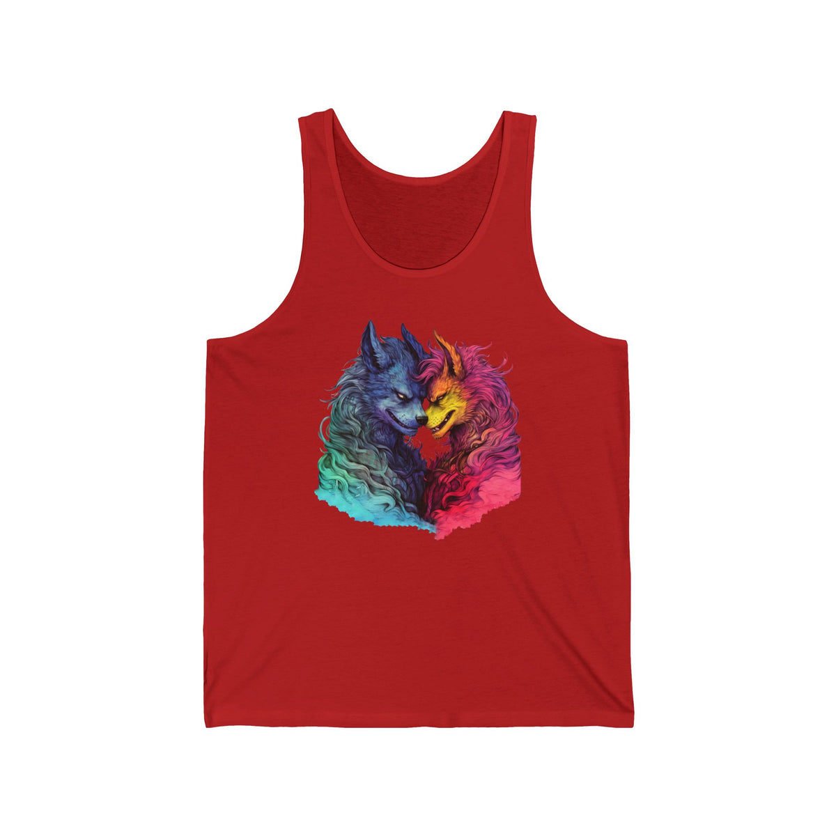 - This must-have unisex jersey tank fits like a well-loved favorite. High quality print makes it an ultimate statement for years to come. This item has side seams to provide structural support. All bindings are the same fabric as the rest of the tank. Most are 100% airlume cotton, although polyester, or rayon may appear in certain colors.