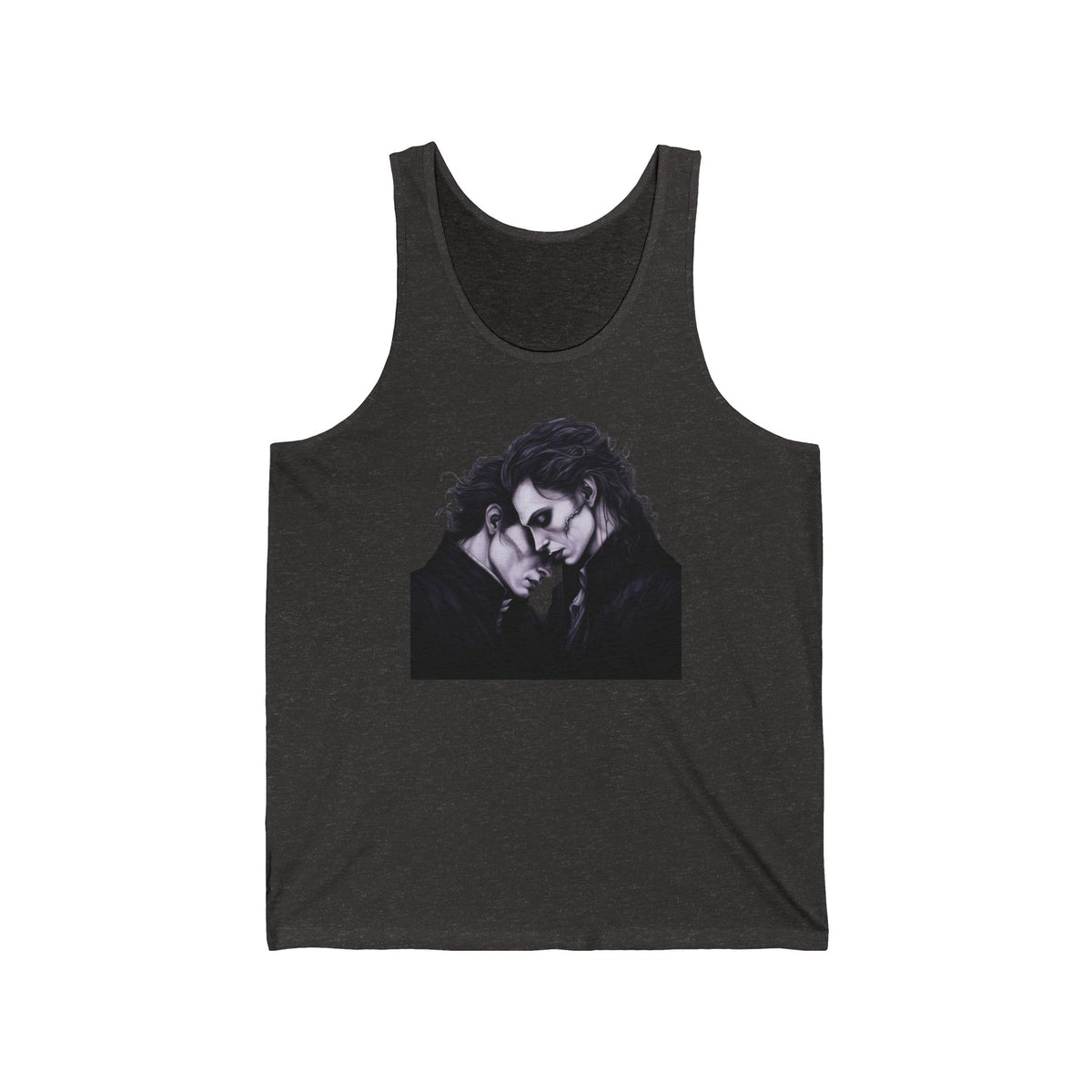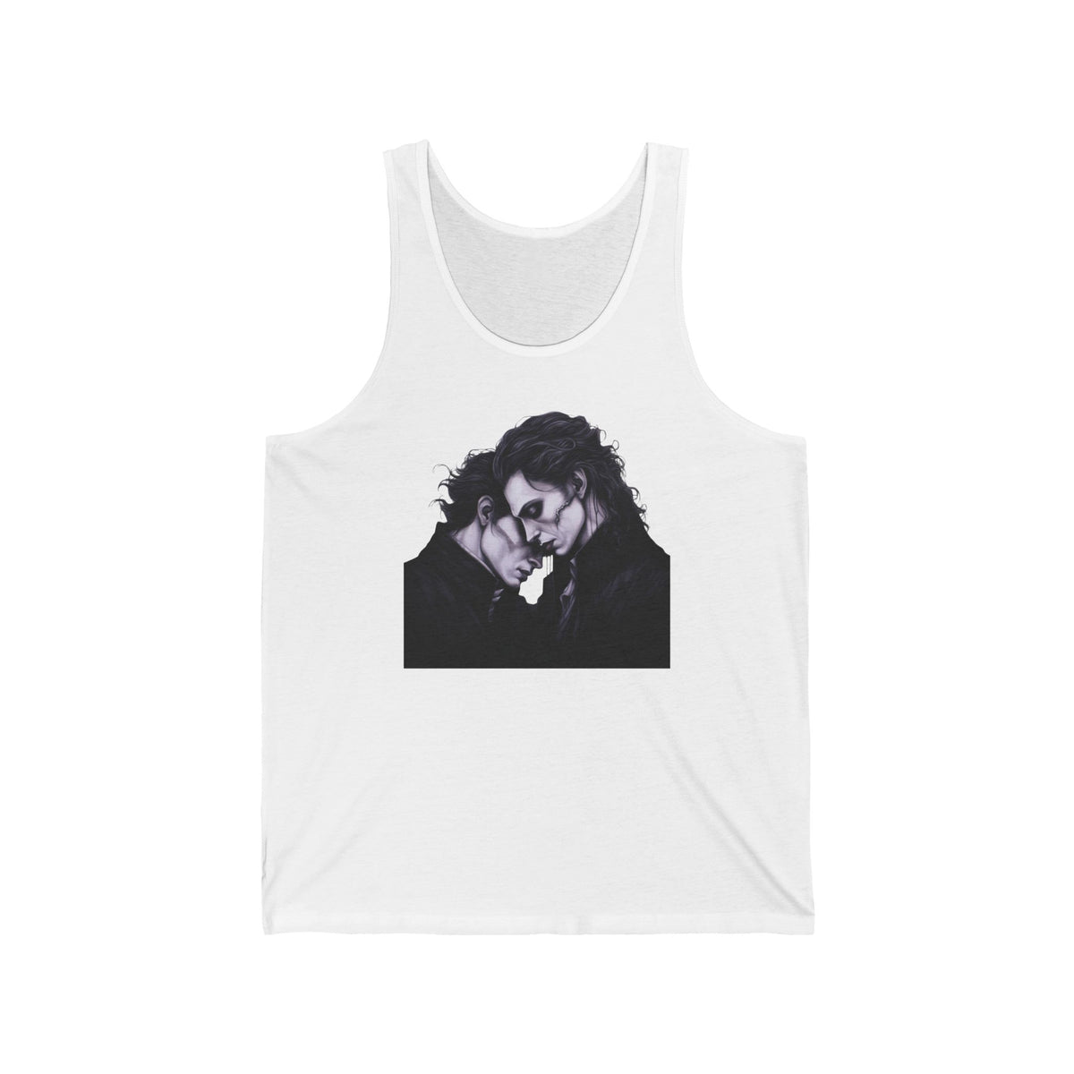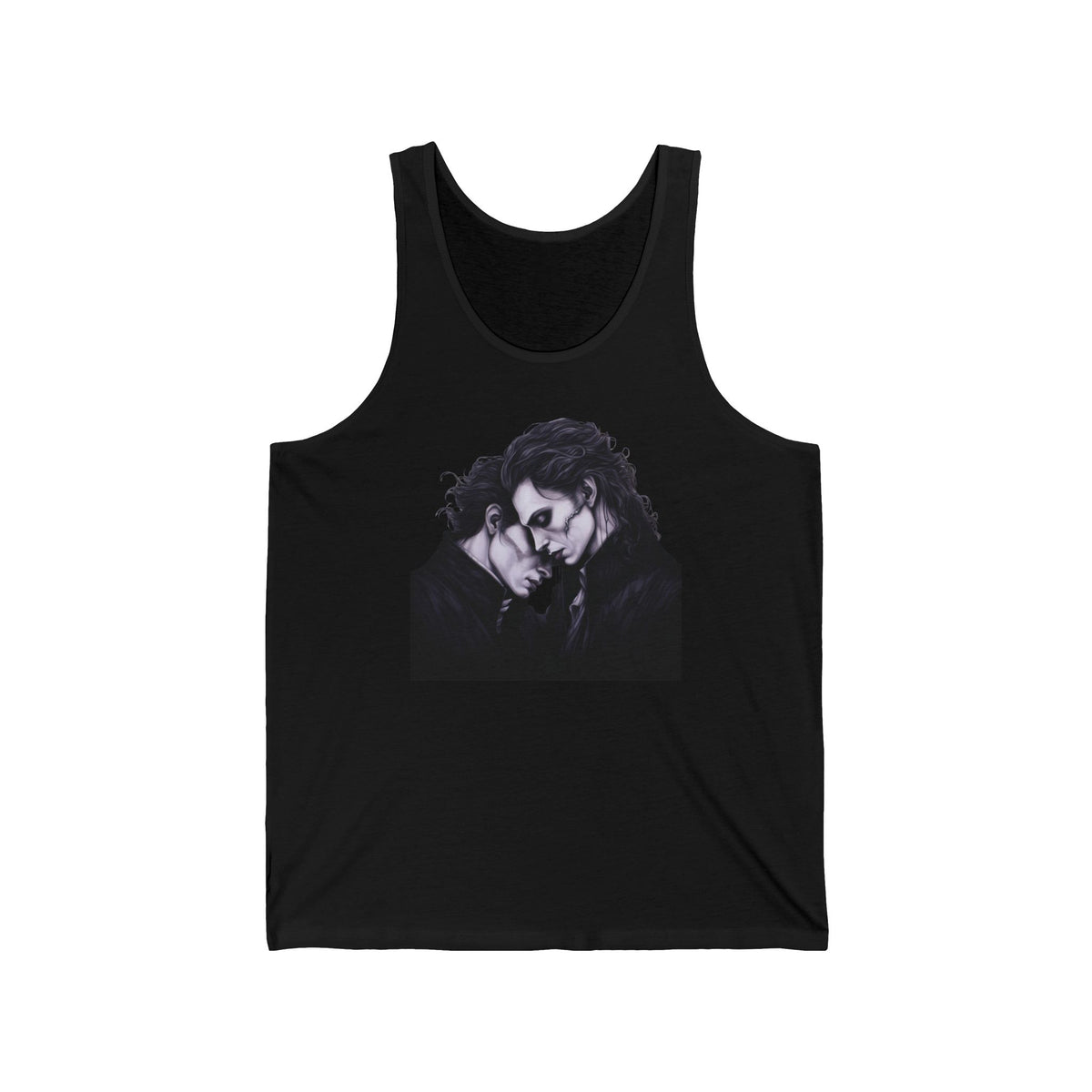 Our Vampire Love Tank is more than just a piece of clothing—it's a hauntingly romantic statement. Featuring two male vampires in a tender embrace, this tank is perfect for Halloween, Valentine’s Day, or any time you want to express eternal love with a dark, gothic flair. The melancholic artwork captures the passion and devotion of a love that endures beyond death, making it a bold and emotional addition to any wardrobe.