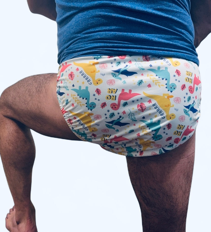 Our Double Layer Fluidproof Nappies bring you the perfect mix of comfort, security, and babyish fun. The ultra-soft polyester outer shell is fully waterproof, keeping leaks at bay, while the gentle mesh lining inside cradles you snugly for hours of padded play or cozy naps. With a double-layer design, they’re made to handle heavy use while keeping you feeling secure and little. Choose from an adorable range of baby prints—including playful dinos, cuddly critters, and bright solids—so you can show off your padded side in style.