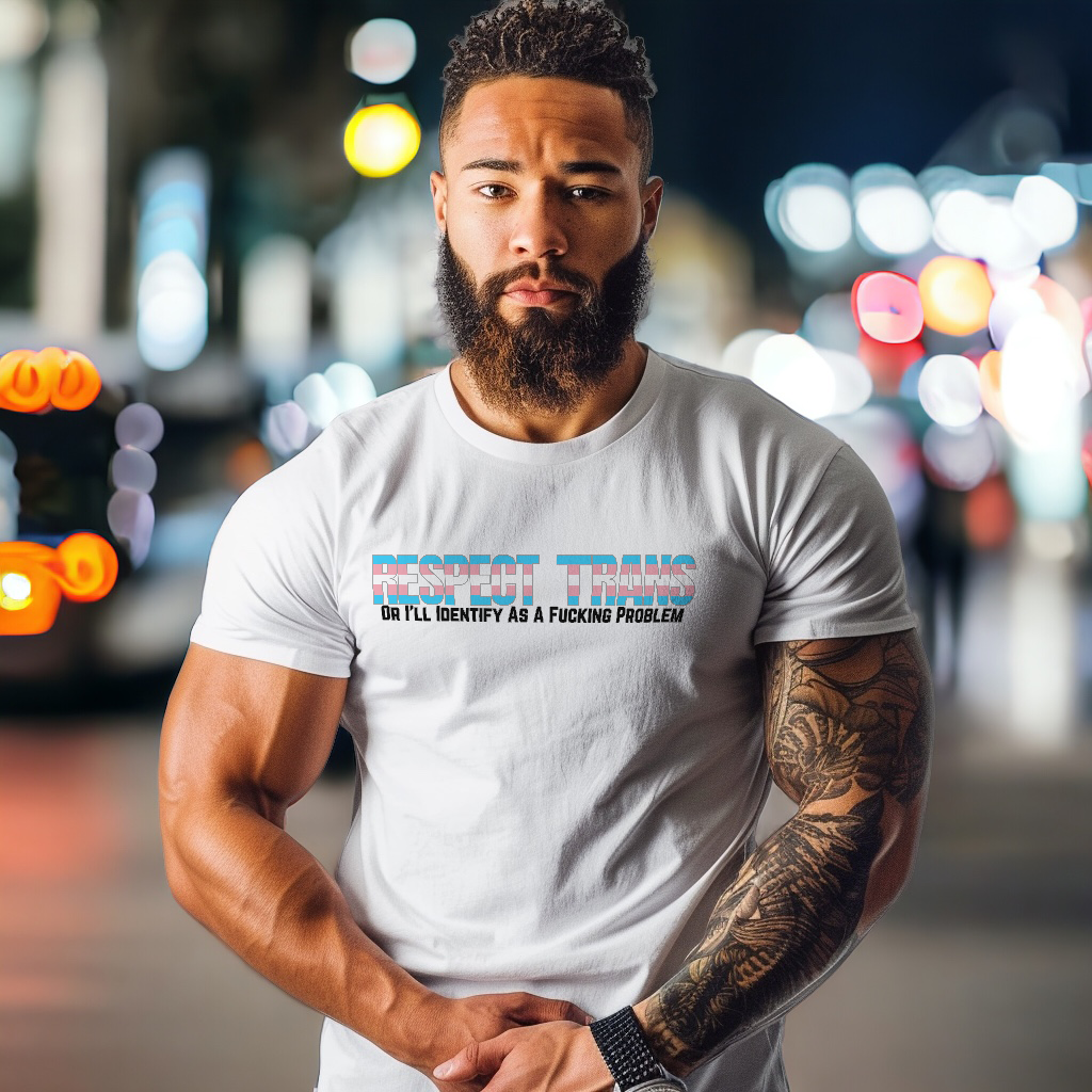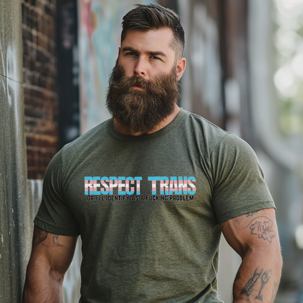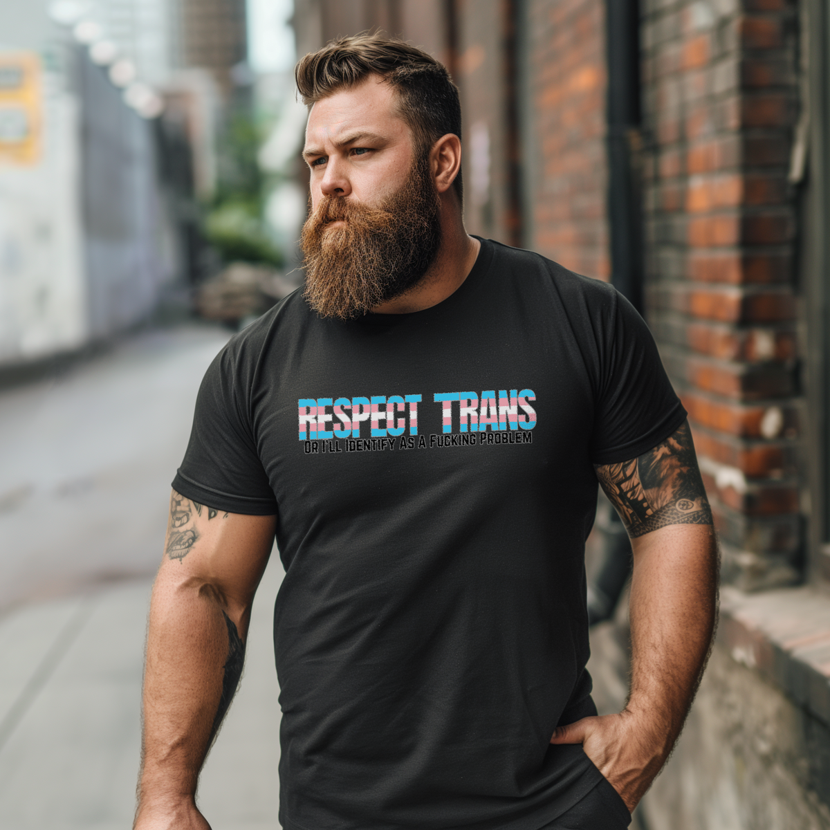 Whether you're attending a rally, hanging out with friends, or just running errands, this tee will keep you comfortable while making a statement. The bold text is designed to catch the eye and start conversations, helping to raise awareness and promote understanding. Wear it with pride and let the world know that respect for the trans community is non-negotiable. Join the movement and express your support in the most unapologetic way possible with our "RESPECT TRANS Or I'll Identify As A Fucking Problem" Tee.