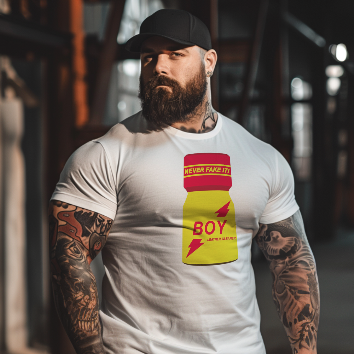 Step into the enchanting world of Daddy-boy dynamics with our 'Poppers Boy' tee. Featuring the iconic Rush poppers bottle logo, this design subtly hints at the exhilarating experiences and training that a boy undergoes in the realm of Daddy-boy play.