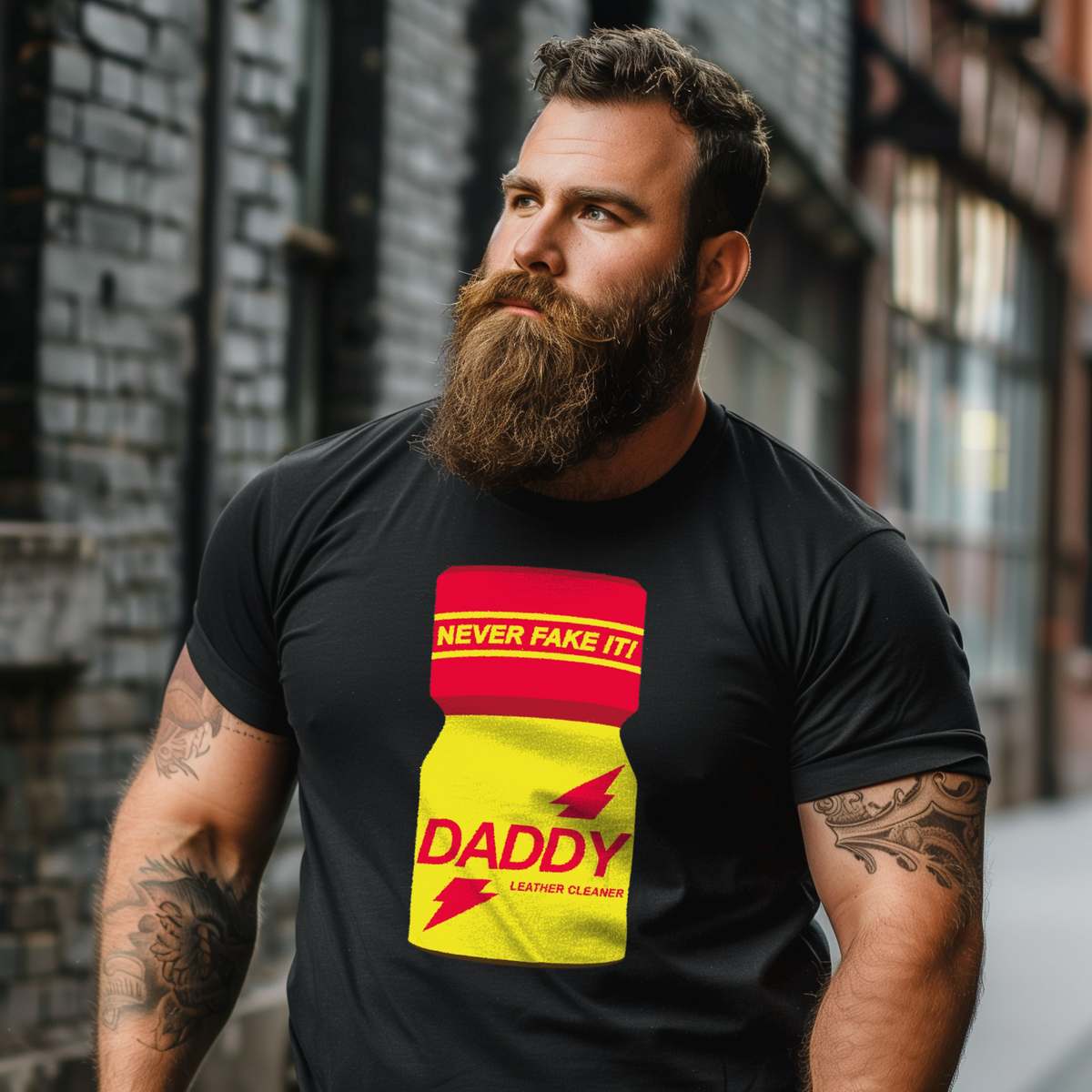 Crafted from comfortable cotton, the 'Poppers Daddy' tee is more than just attire—it's an emblem of your niche. Wear it as a bold statement of the Daddy role or as a nod to the intimate dance of trust and exploration inherent in this unique dynamic. It's not only a cozy wear but also a conversation starter, inviting intrigue and connection within the circles that recognize its significance. Whether you're deeply embedded in the scene or simply drawn to its aesthetic, this shirt encapsulates the allure and complexity of Daddy-boy relationships.