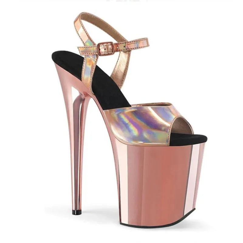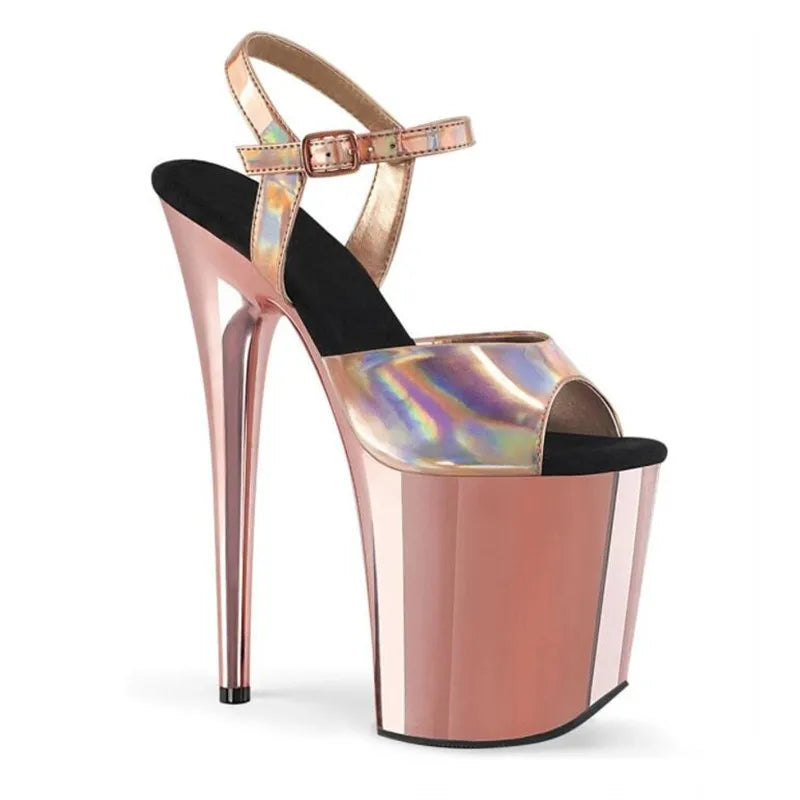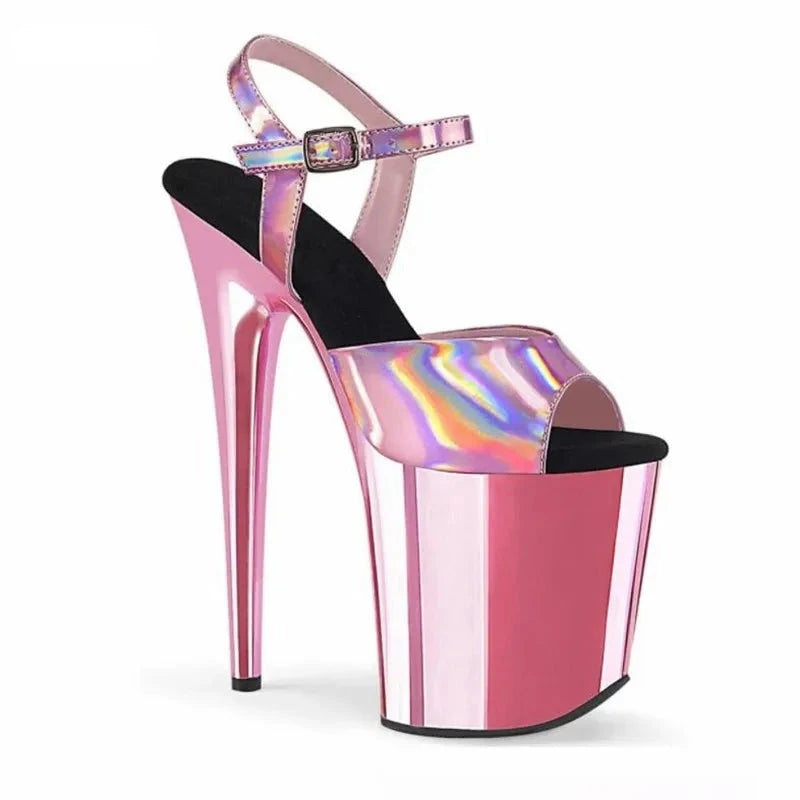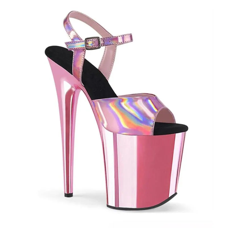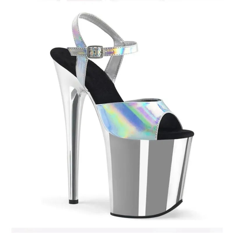 Step into your wildest fantasy with our dazzling BBZs Sissy Heels. These show-stopping platforms are designed to make you feel like the star you are. With a stunning holographic finish that catches the light at every angle, these heels are perfect for making a bold statement. The sleek 8-inch stiletto heel and 4-inch platform give you the height and confidence to strut your stuff, while the adjustable ankle strap ensures a secure and comfortable fit.