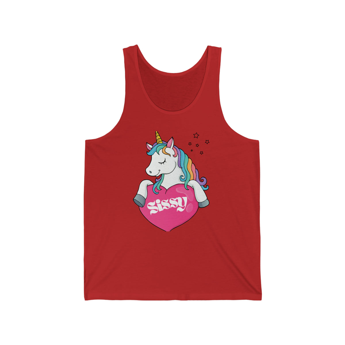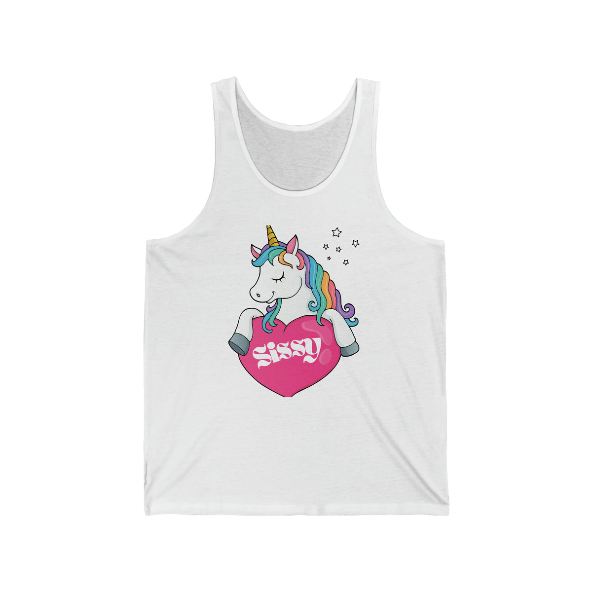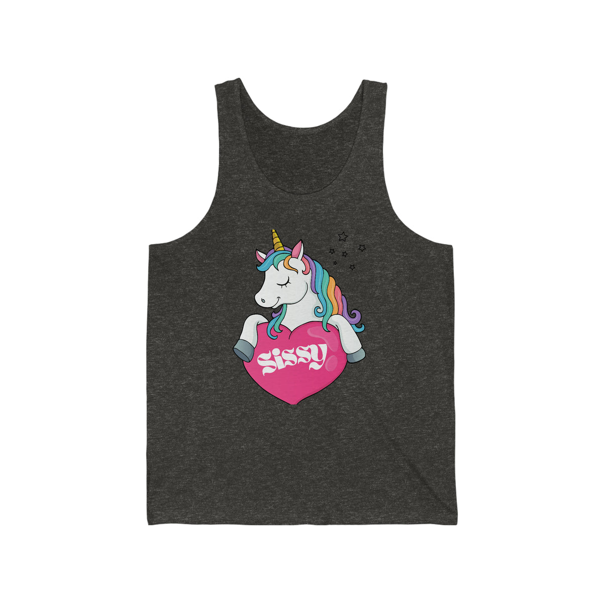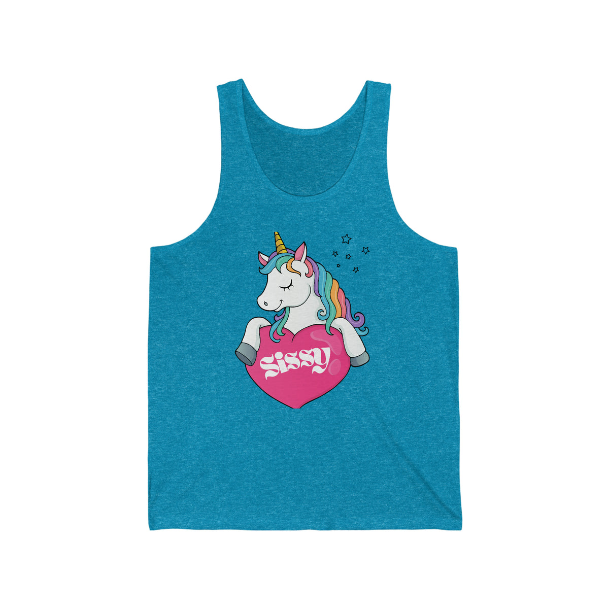 Step into a realm of enchantment with our Bella+Canvas Unicorn Sissy Tank! Brilliant colors swirl around a spirited unicorn embracing a heart stamped with "SISSY". The unicorn, symbolizing wonder and allure, shines in mesmerizing hues, making this tank an unforgettable piece.