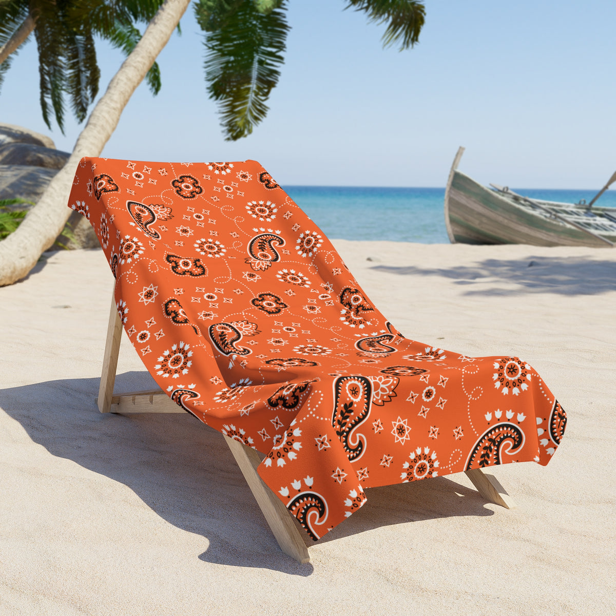 - This heavyweight towel feels extra lush to the touch with its polyester print side, and cotton loop backing for durability.