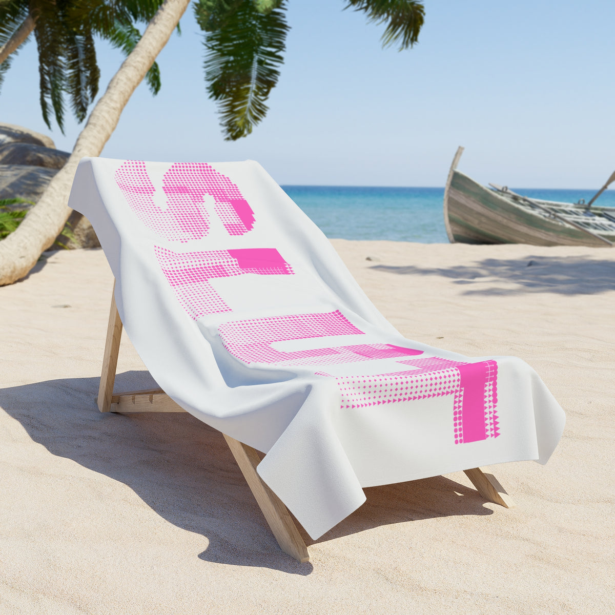 - This heavyweight towel feels extra lush to the touch with its polyester print side, and cotton loop backing for durability.