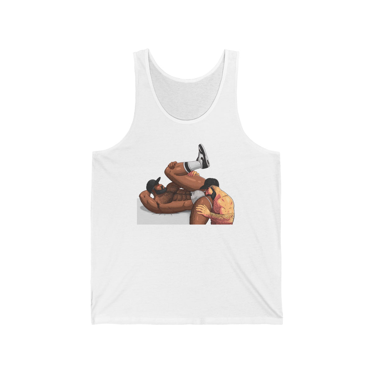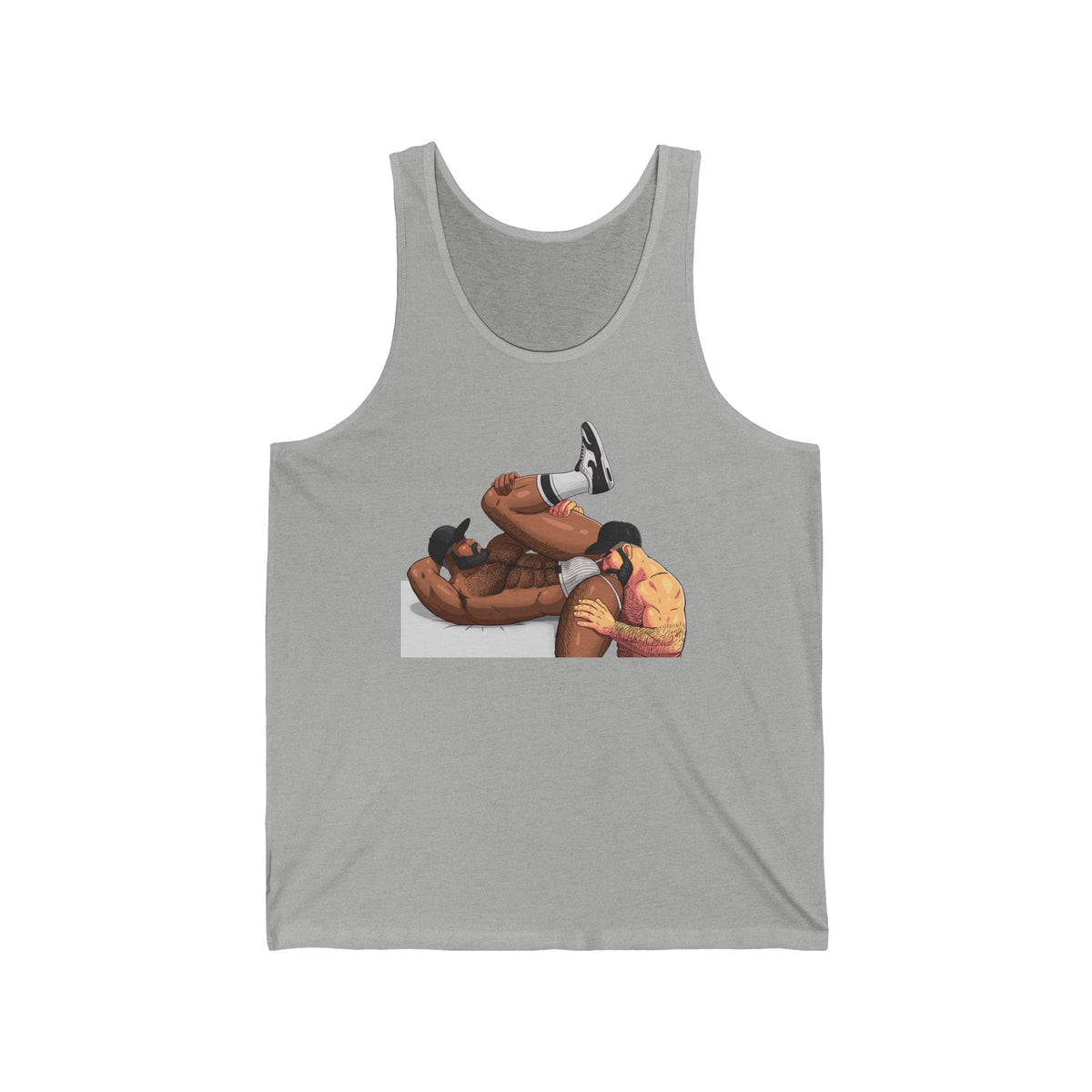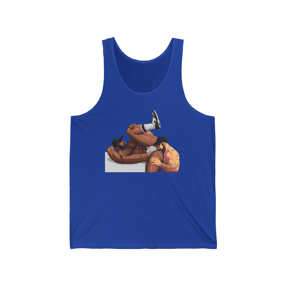 - This must-have unisex jersey tank fits like a well-loved favorite. High quality print makes it an ultimate statement for years to come. This item has side seams to provide structural support. All bindings are the same fabric as the rest of the tank. Most are 100% airlume cotton, although polyester, or rayon may appear in certain colors.