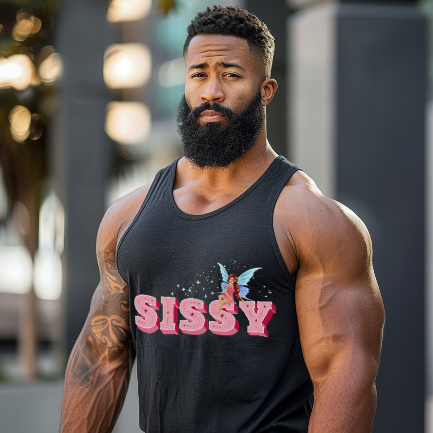 Dive into mystical allure with our Bella+Canvas Fairy SISSY Tank! This premium touch, top-tier cotton tank is adorned with a lively and captivating motif. Taking center stage is the word "SISSY", illuminated by a meticulously designed fairy resting on the final 'S'.