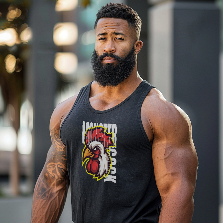 Get ready to strut your stuff with our bold new Monster Cock Tank! Featuring a fierce, larger-than-life rooster, strutting its massive attitude and its unmistakable oversized waddle, this jersey tank is perfect for those who embrace their own beast mode. The vibrant design packs a punch of energy, while the graphic’s detail will definitely turn heads—whether you’re at the gym, the bar, or hanging with friends.