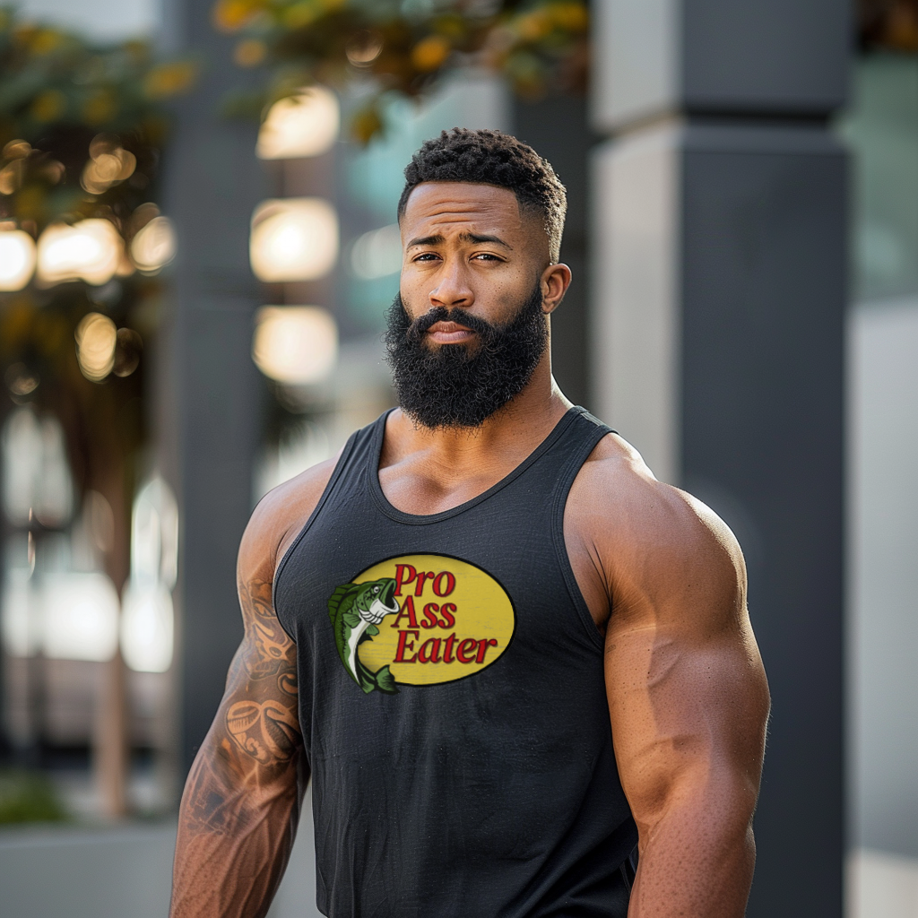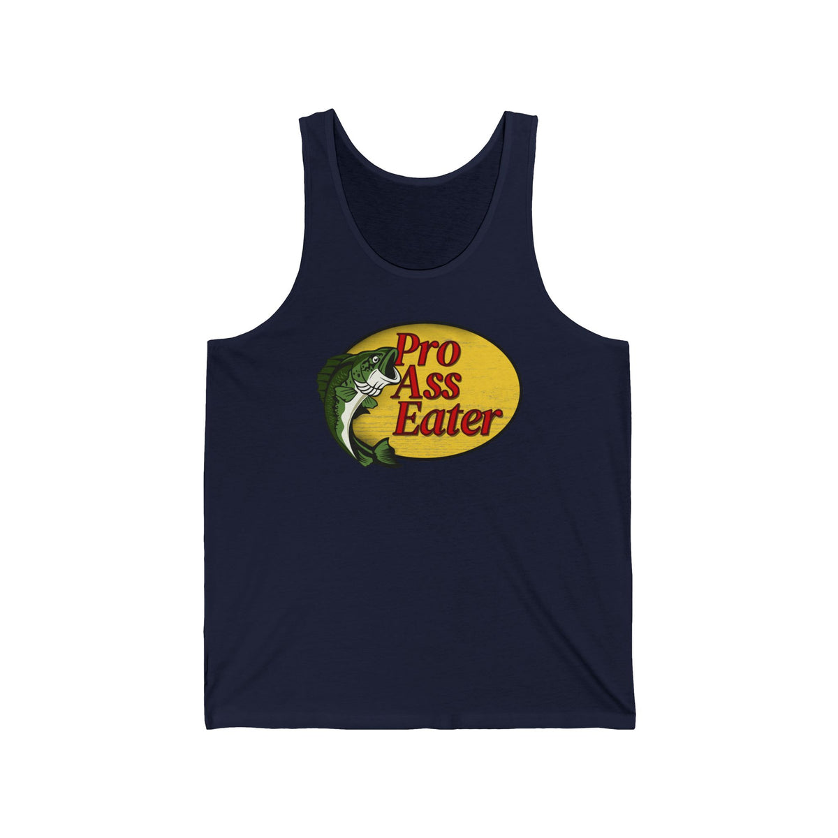 Show off your sense of humor and make a bold statement with our "Pro Ass Eater" Tee; a hilarious spoof of the iconic Bass Pro Shop. Whether you're reveling in the nostalgia of those butch hairy daddies pushing strollers down the concrete aisles, or your mouth waters at their dirty, musky scent, this top is for the pro ass eaters that wont turn and fine ass away.