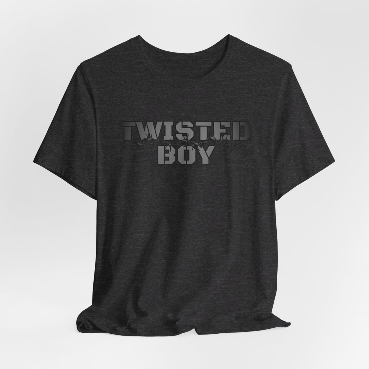 Step into your own with our new “Twisted Boy” Tee, where rebellion meets style. Featuring the bold “Twisted Boy” text split by a line of barbed wire, this shirt is made for those who embrace their edge and aren’t afraid to show it. Whether you’re pushing boundaries or simply owning your space, this tee lets the world know you’re not here to play by the rules.